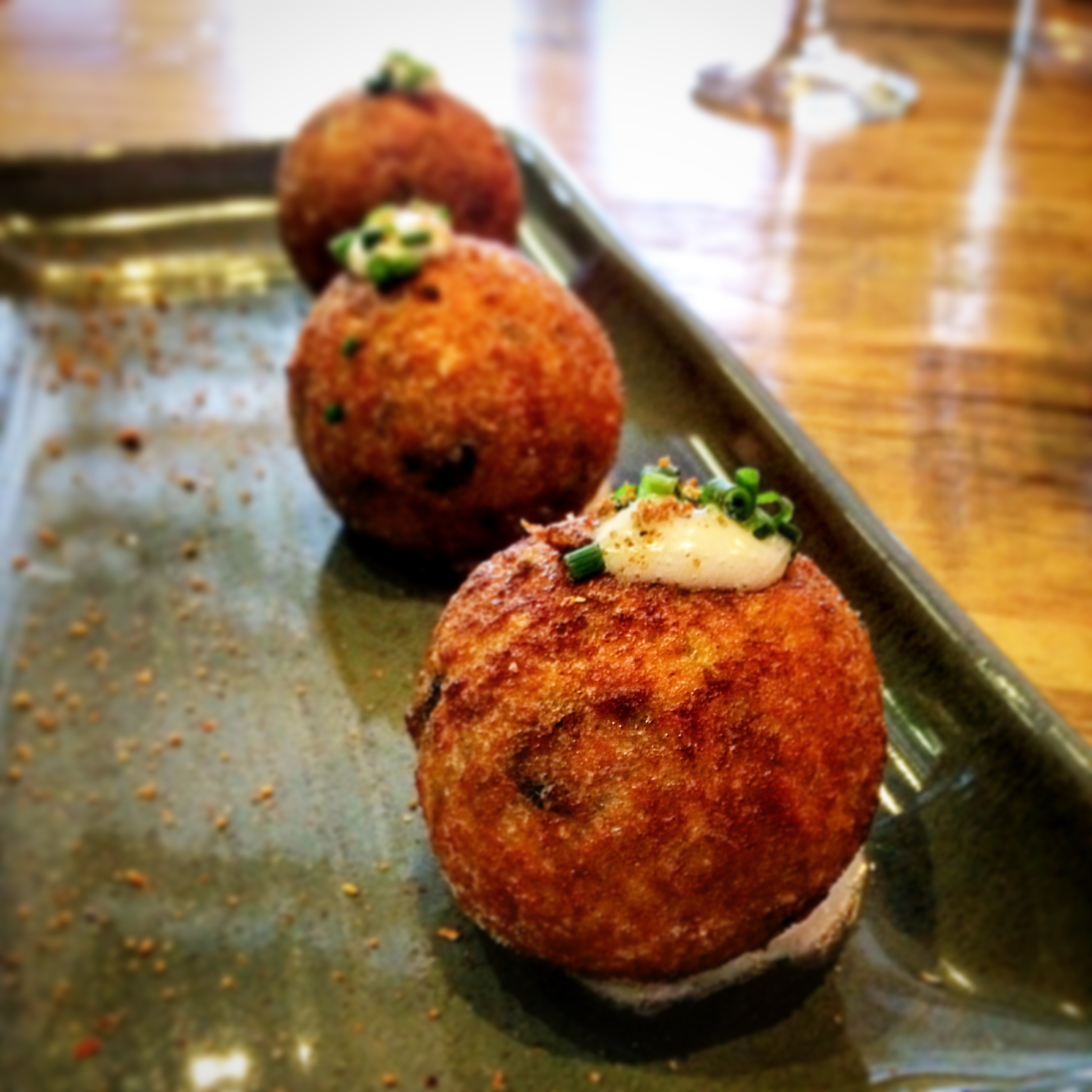 Posted on April 11, 2016 by Jacqui's Food Fetish Leave a comment Fried balls of unagi, cod, fungi and reggiano