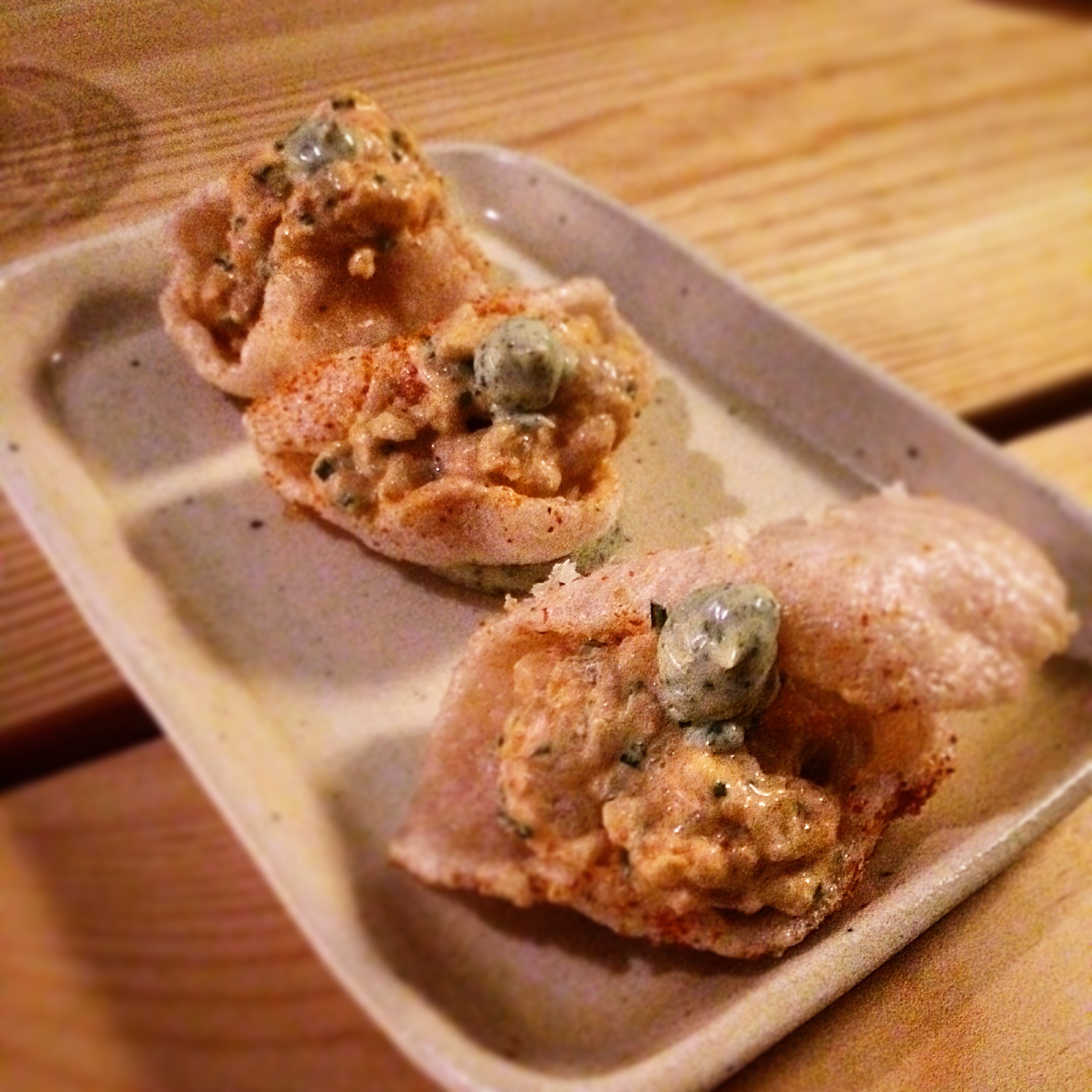 Posted on April 19, 2017 by Jacqui's Food Fetish Leave a comment Spiced prawn cracker, chopped prawn, seaweed, mayonnaise