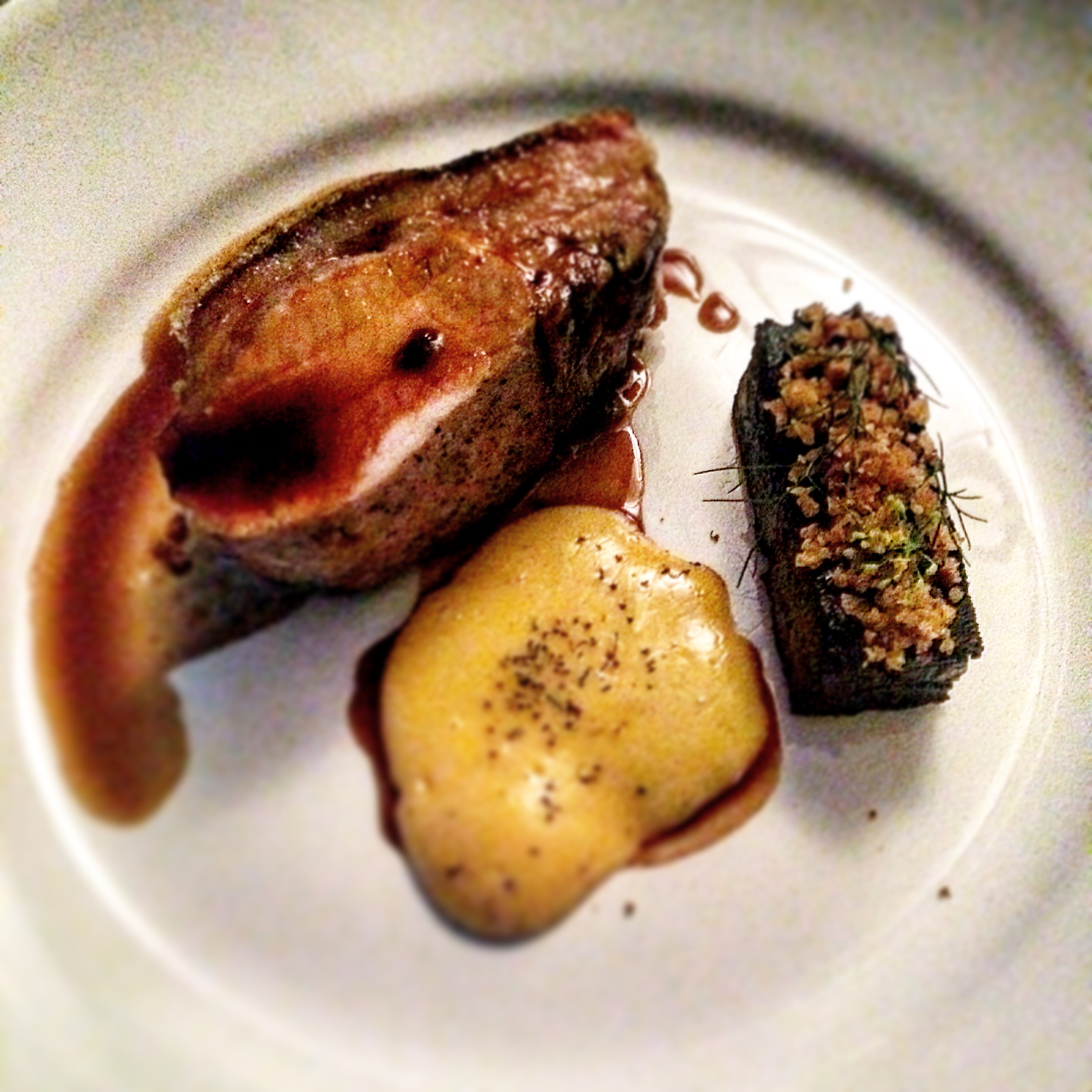 Posted on February 18, 2016 by Jacqui's Food Fetish Leave a comment Roasted pork loin, black pudding, walnut and potato crumb, fennel, mustard