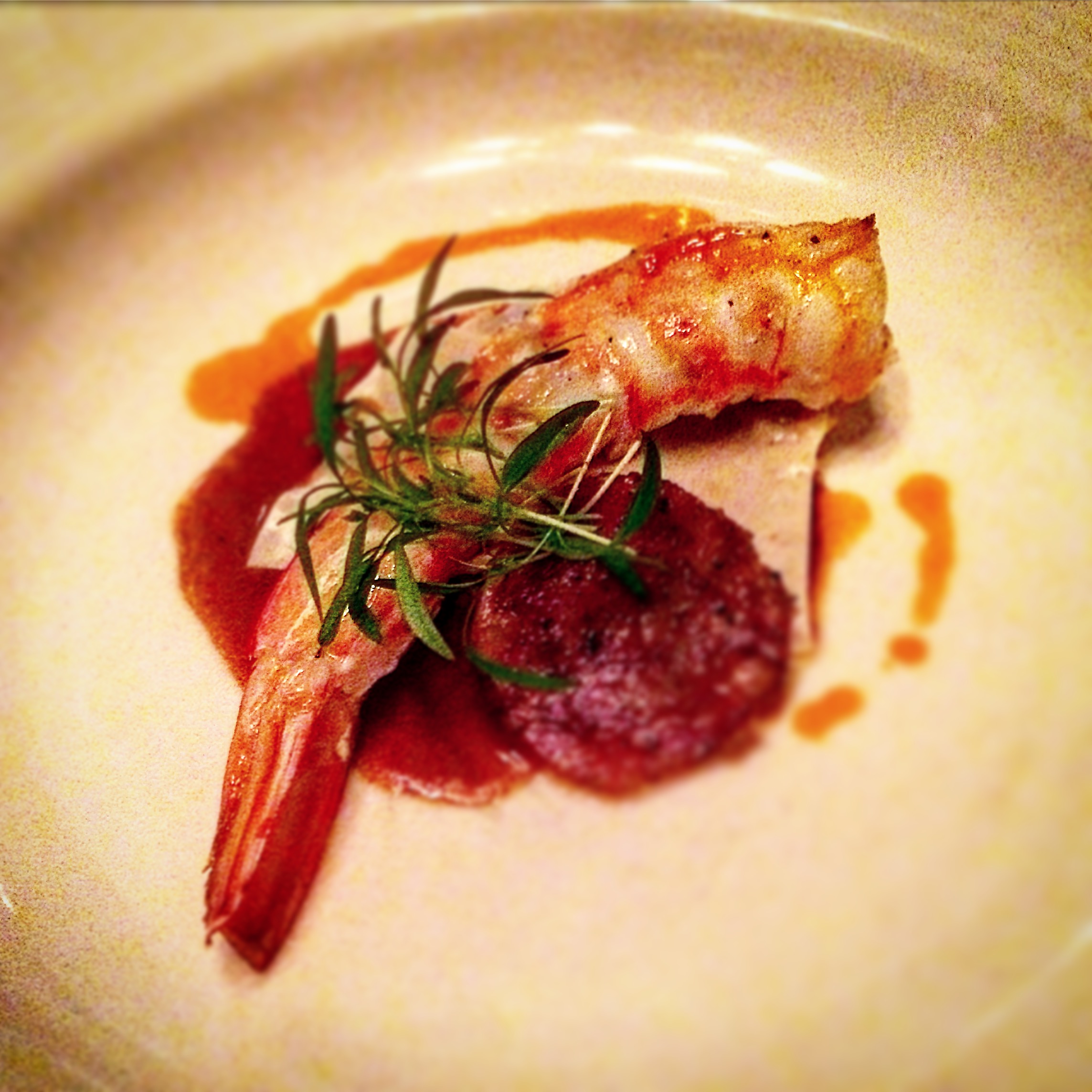 Posted on August 31, 2016 by Jacqui's Food Fetish Leave a comment Roasted Gulf king prawn with bbq corn in Jiao Zi pastry, prawn essence and cotechino sausage