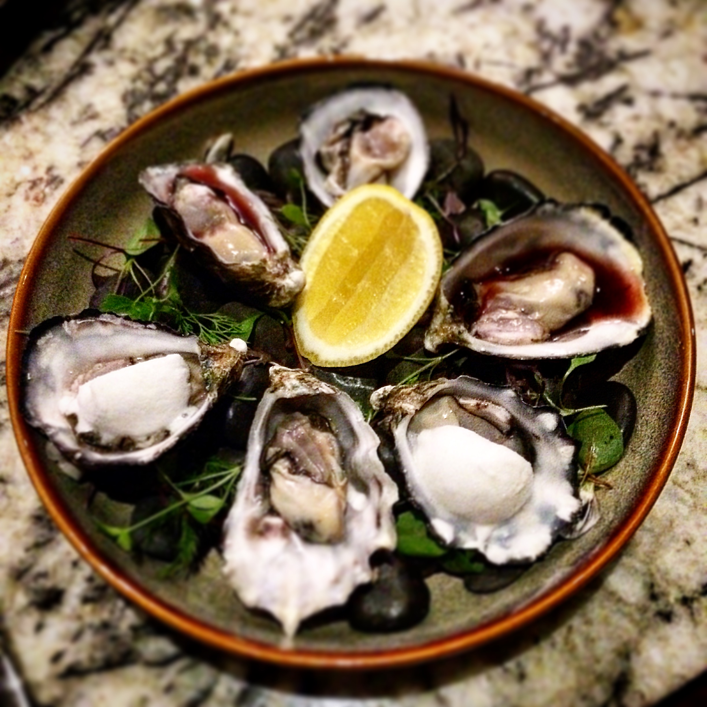 Posted on July 15, 2016 by Jacqui's Food Fetish Leave a comment Smoky Bay oysters – natural, lemon sorbet and vinaigrette