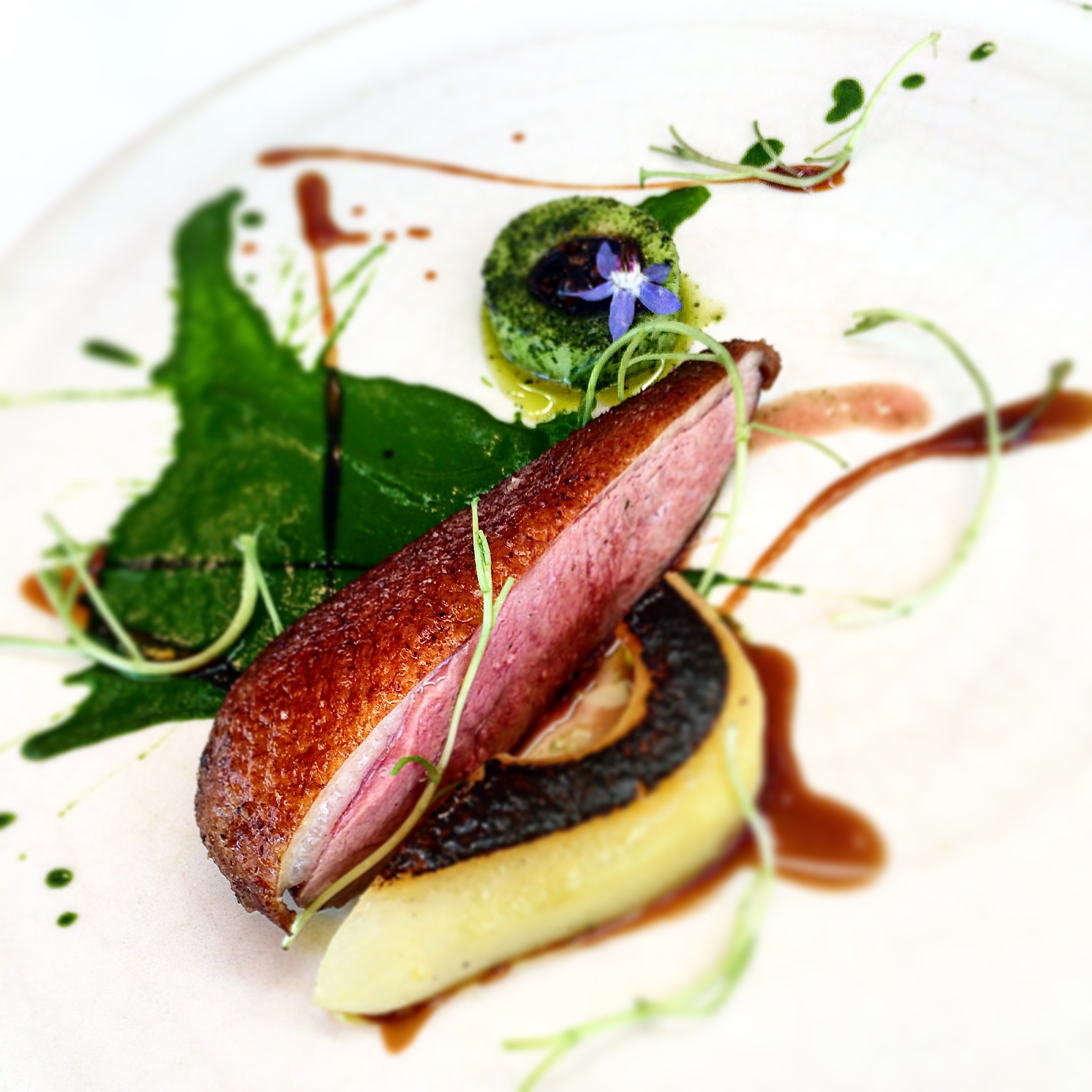 Posted on April 21, 2016 by Jacqui's Food Fetish Leave a comment Duck, cucumber, pear, watercress, malt