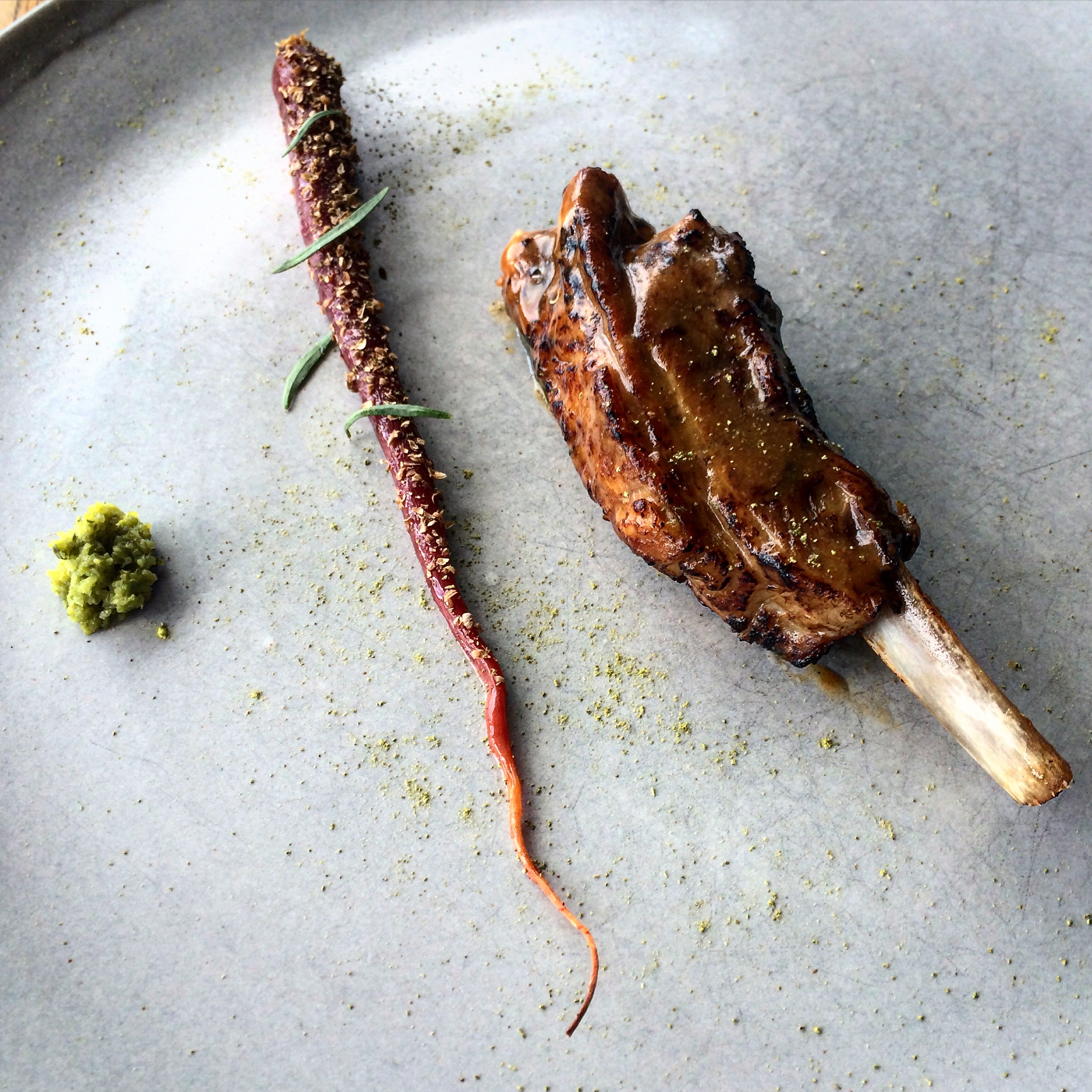 Posted on April 14, 2016 by Jacqui's Food Fetish Leave a comment Lamb with red miso, heirloom carrot and lime kosho