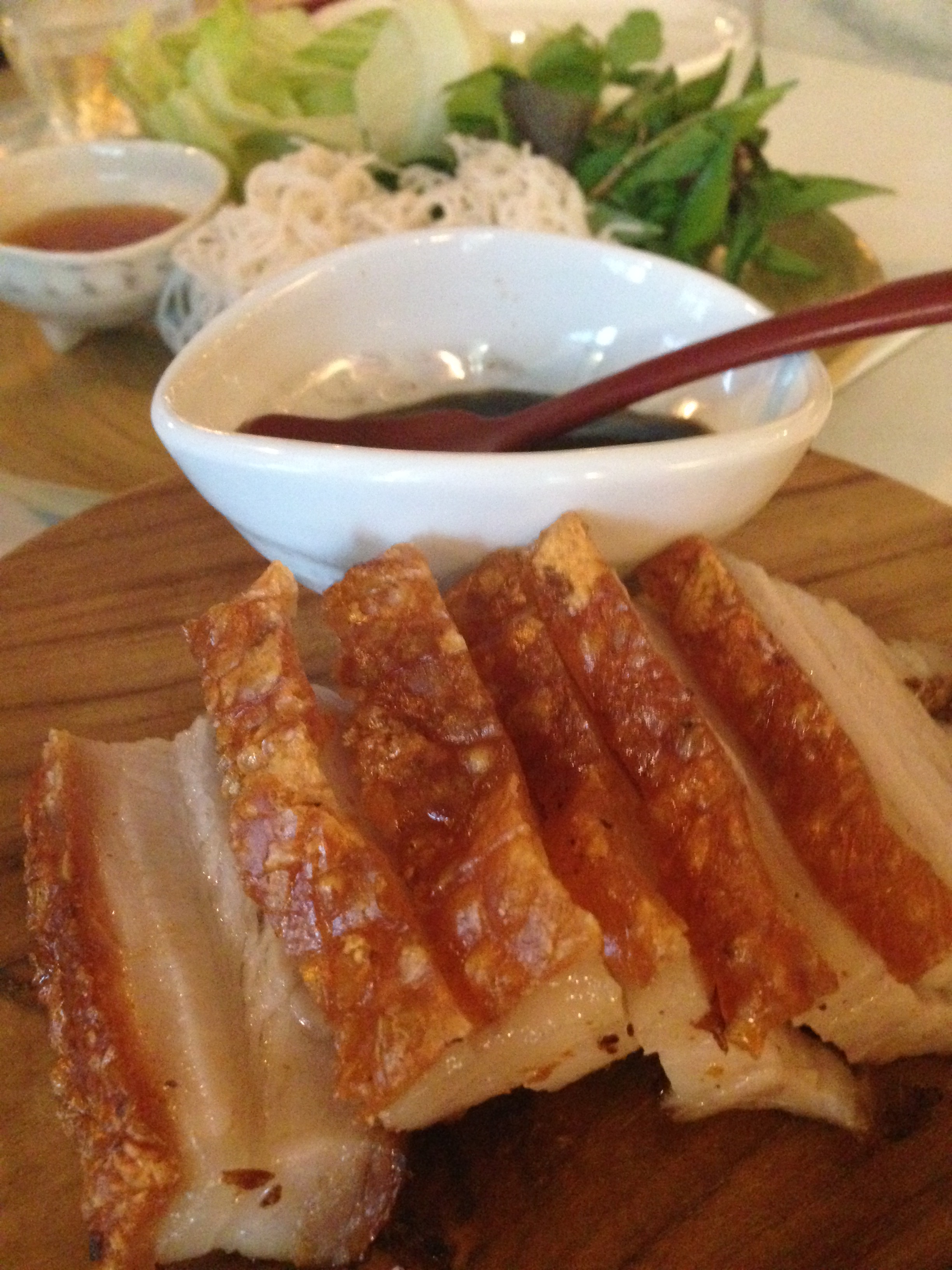 Posted on January 28, 2015 by Jacqui's Food Fetish Leave a comment Heo quay cuon rau – crispy pork belly, Vietnamese herbs, hoisin sauce, lettuce cups