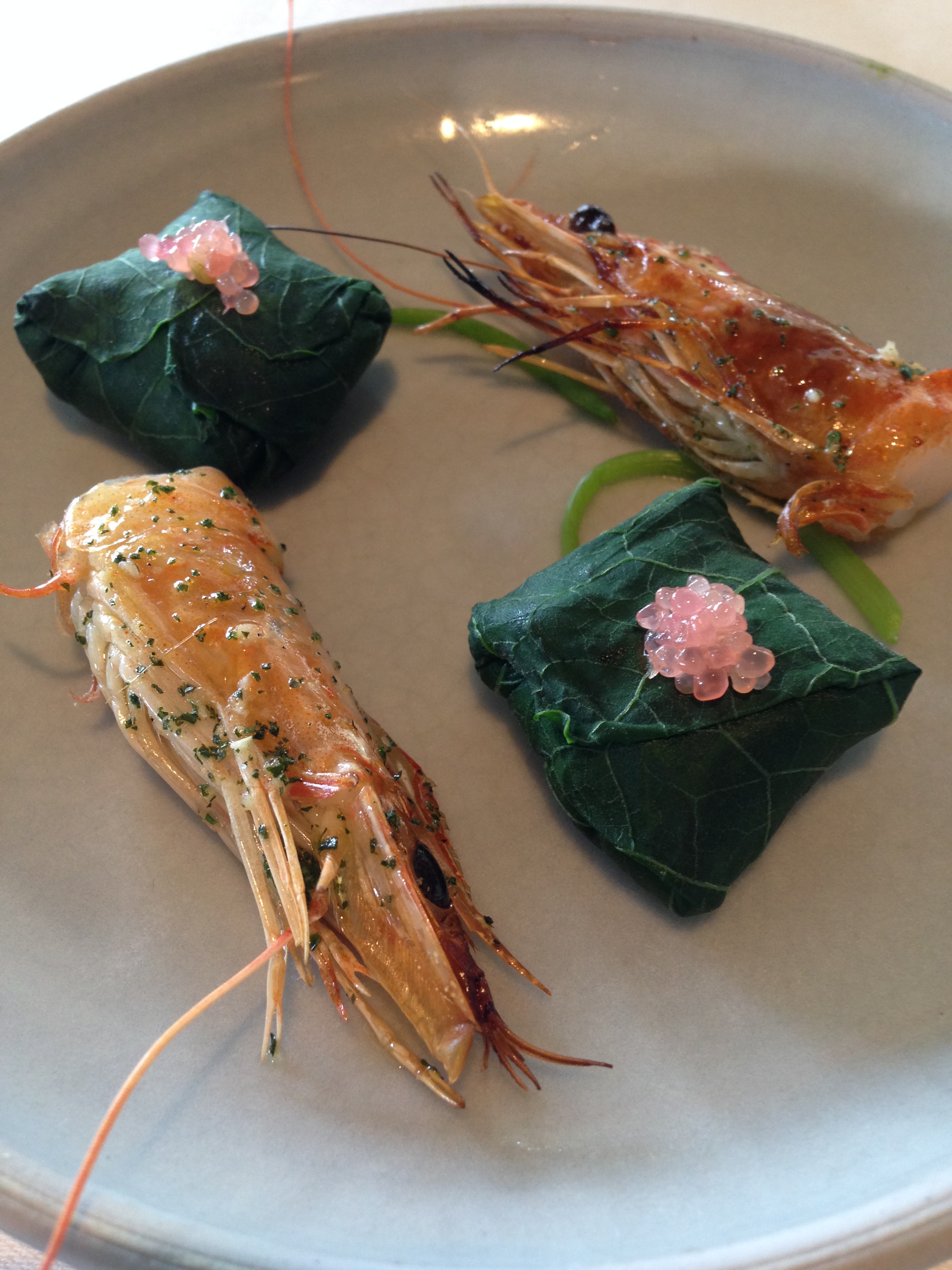 Prawn, nasturtium, finger lime