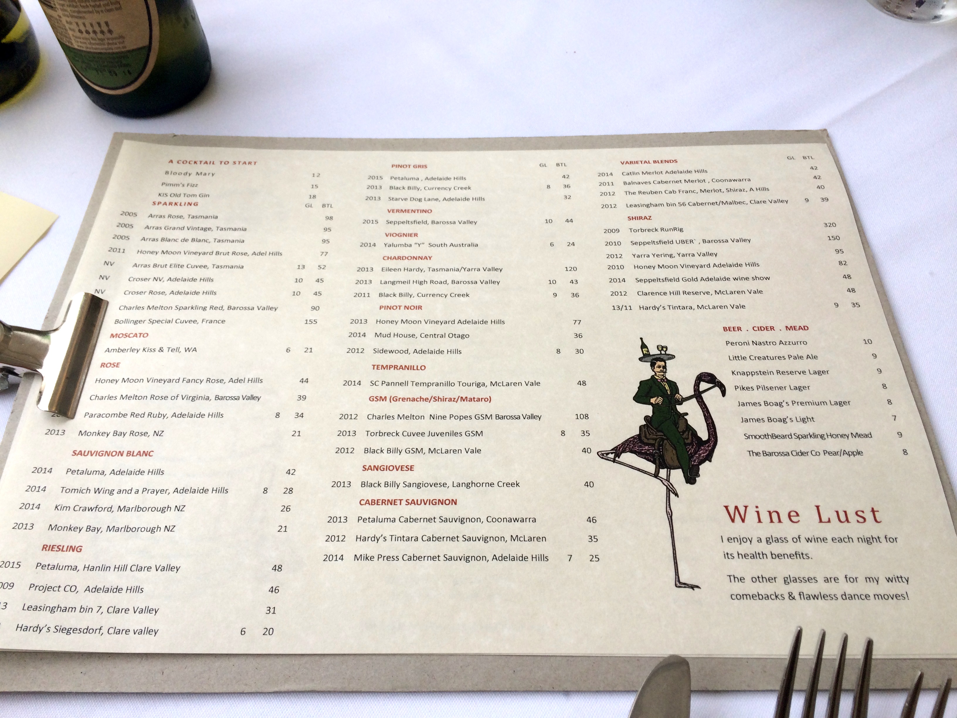 The wine list