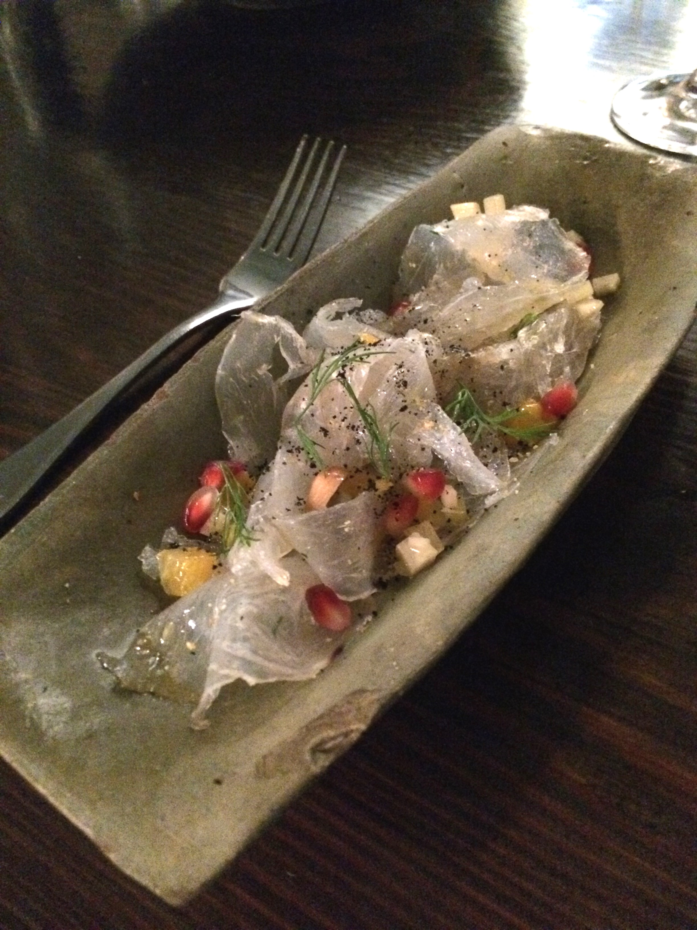 Posted on May 9, 2016 by Jacqui's Food Fetish Leave a comment Melaleuca smoked red emperor, peanut and papaya relish, pomelo and salmon pearls