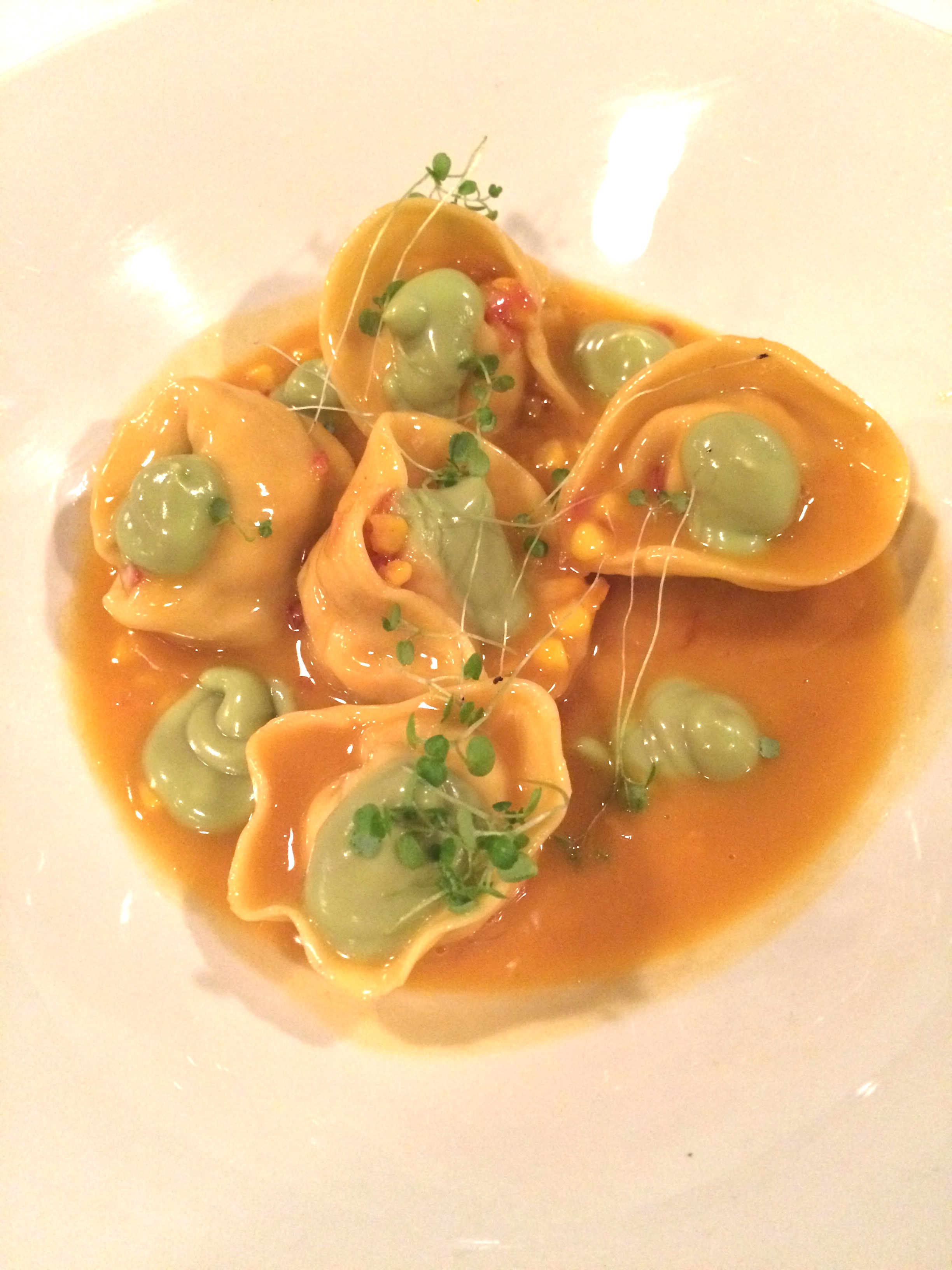 Posted on December 18, 2015 by Jacqui's Food Fetish Leave a comment Tortellini of Huon salmon, avocado, sweet corn, orange beurre blanc
