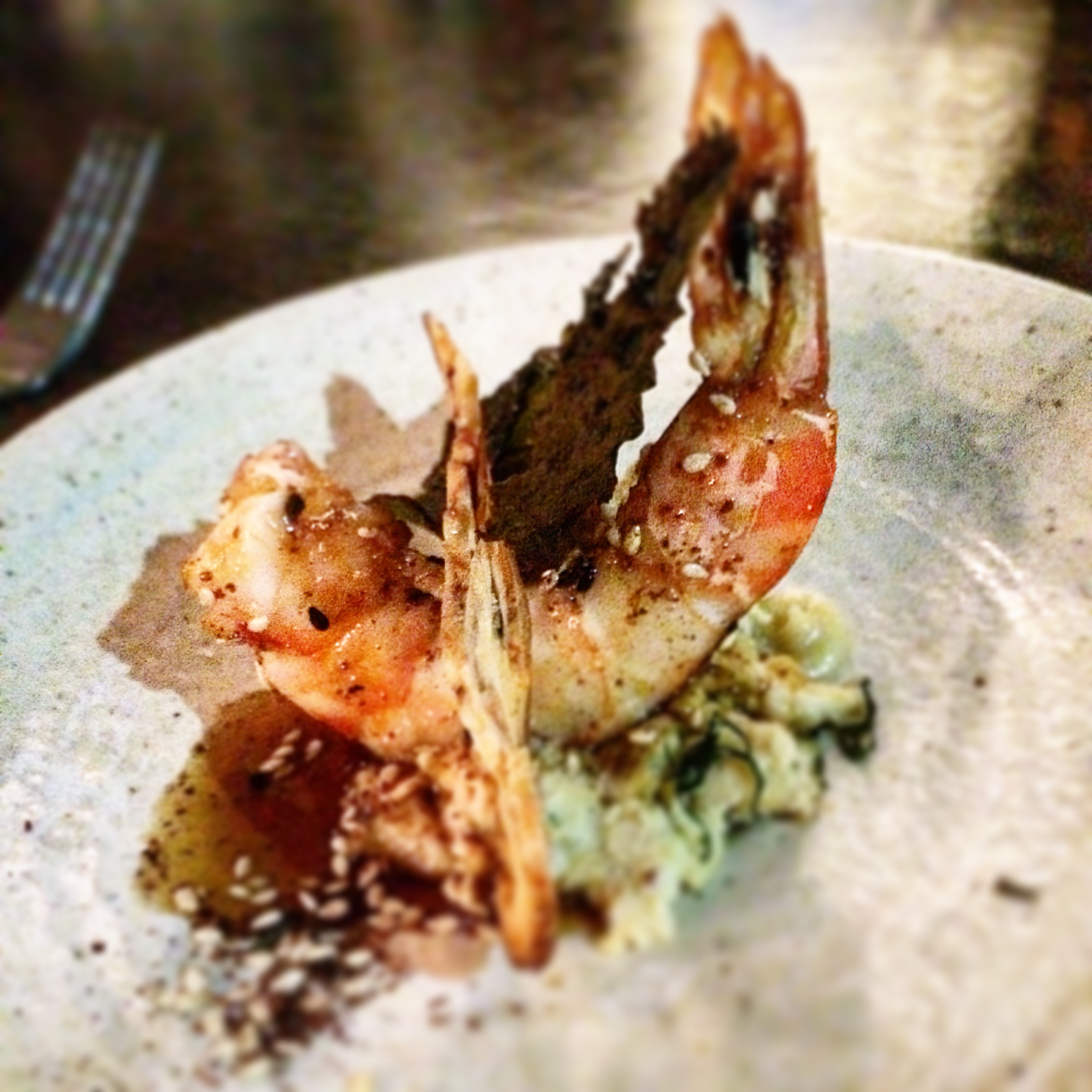 Posted on May 9, 2016 by Jacqui's Food Fetish Leave a comment BBQ tiger prawns, rainforest honey, dried grapes and walnut toast
