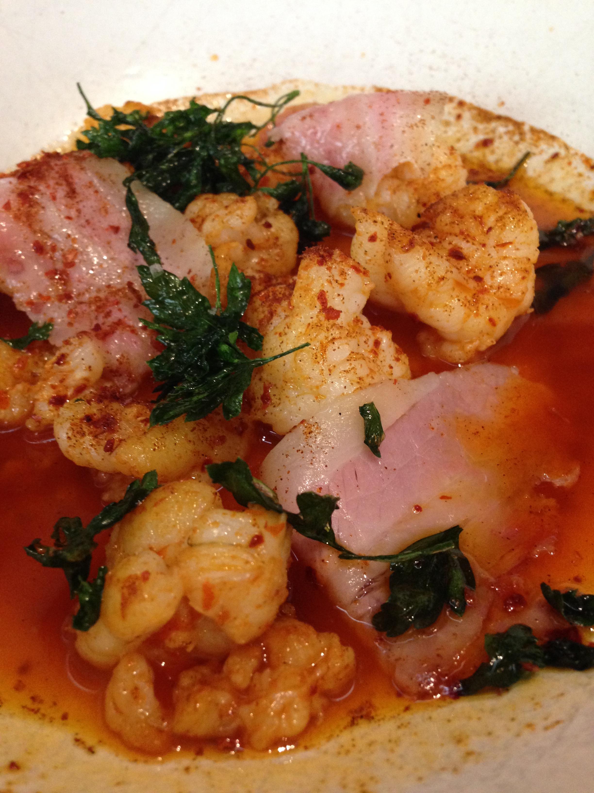 Posted on January 12, 2015 by Jacqui's Food Fetish Leave a comment Moreton Bay Bugs with chilli, smoked jowl, espelette