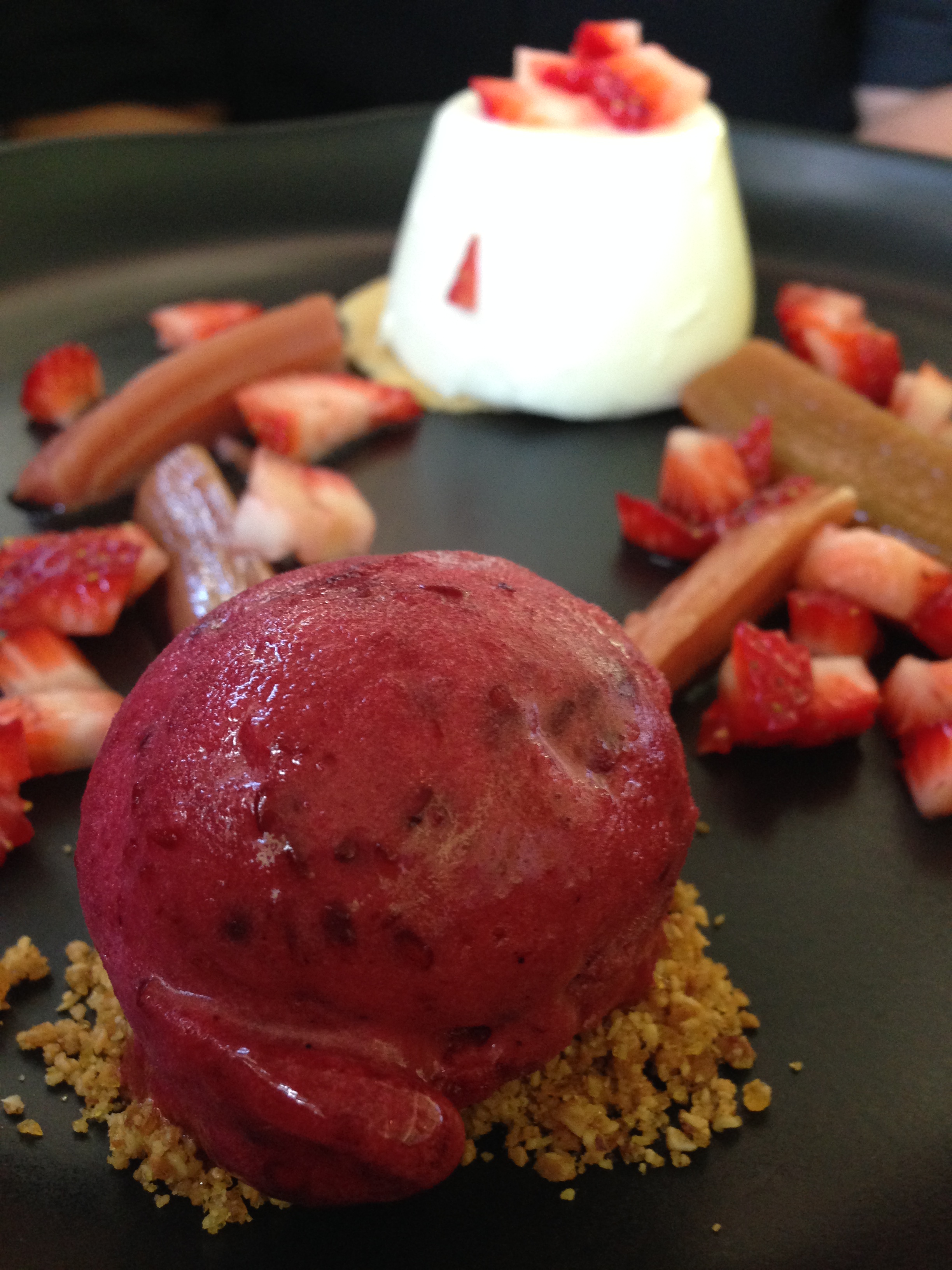 046 Posted on January 10, 2015 by Jacqui's Food Fetish Leave a comment Rose water panna cotta, poached rhubarb, sumer berries, spiced blackberry sorbet