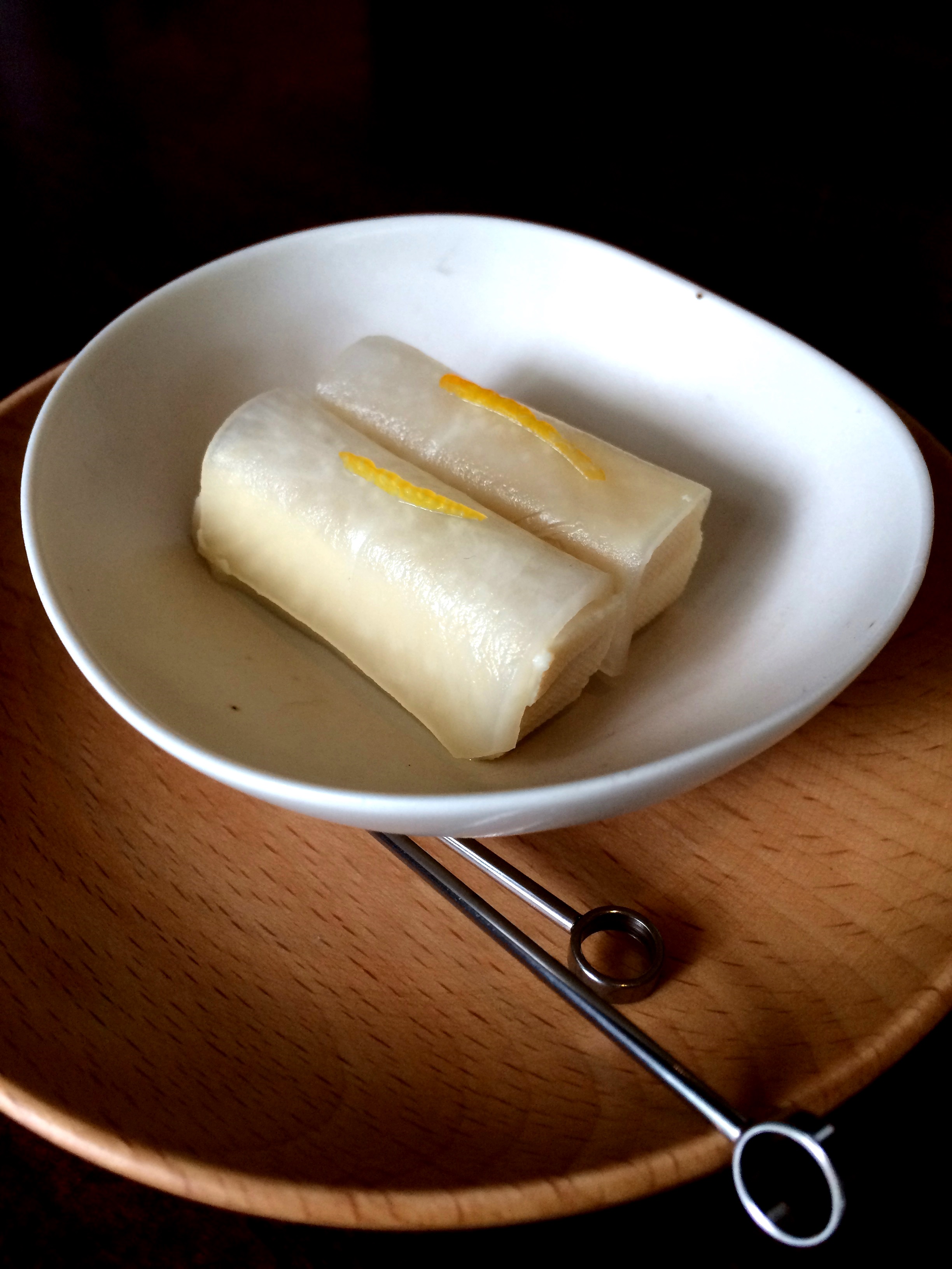 Posted on November 15, 2015 by Jacqui's Food Fetish Leave a comment Parcel of miso-marinated tofu topped with yuzu rind