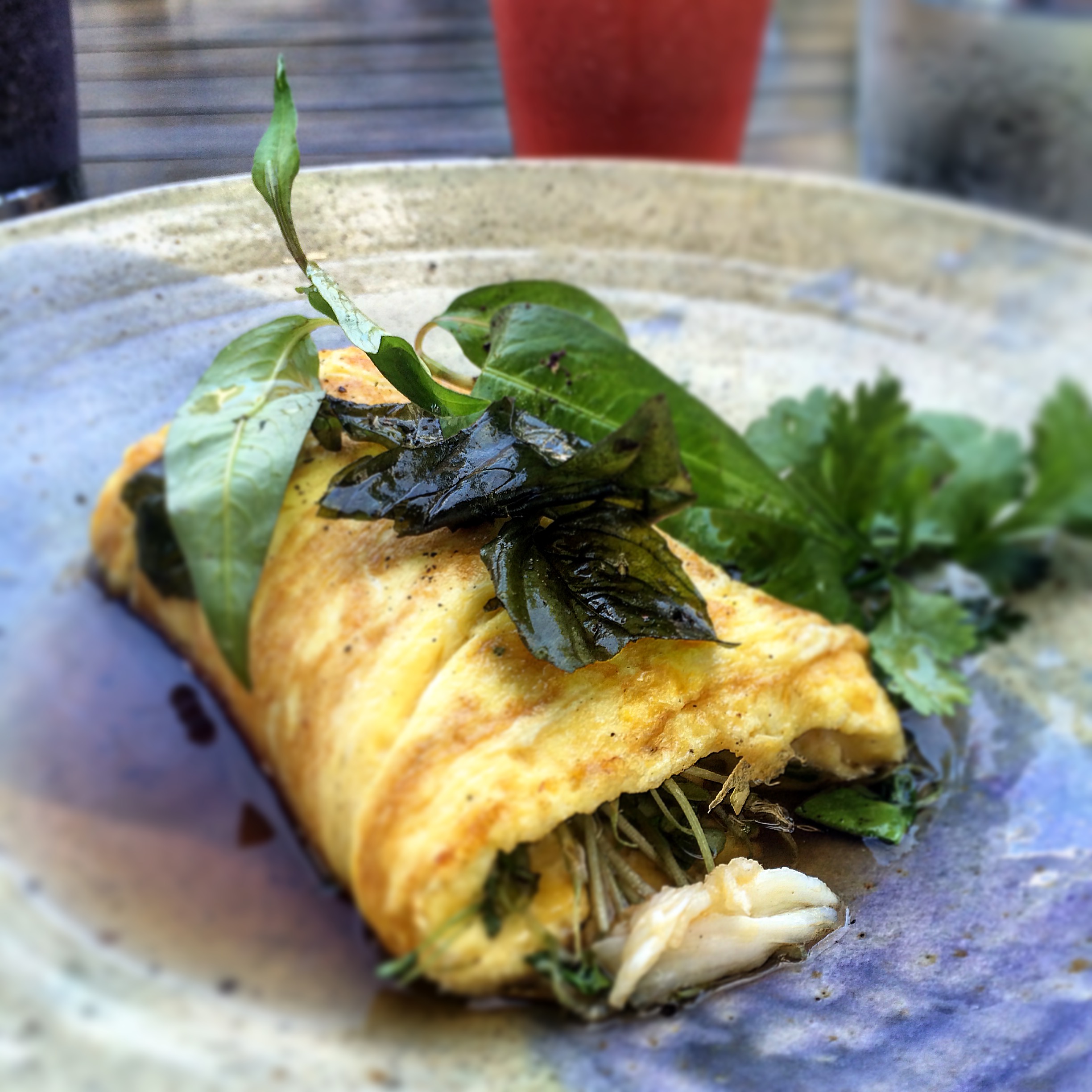Posted on May 9, 2016 by Jacqui's Food Fetish Leave a comment North Queensland mud crab omelette, greens, ginger caramel and white pepper broth