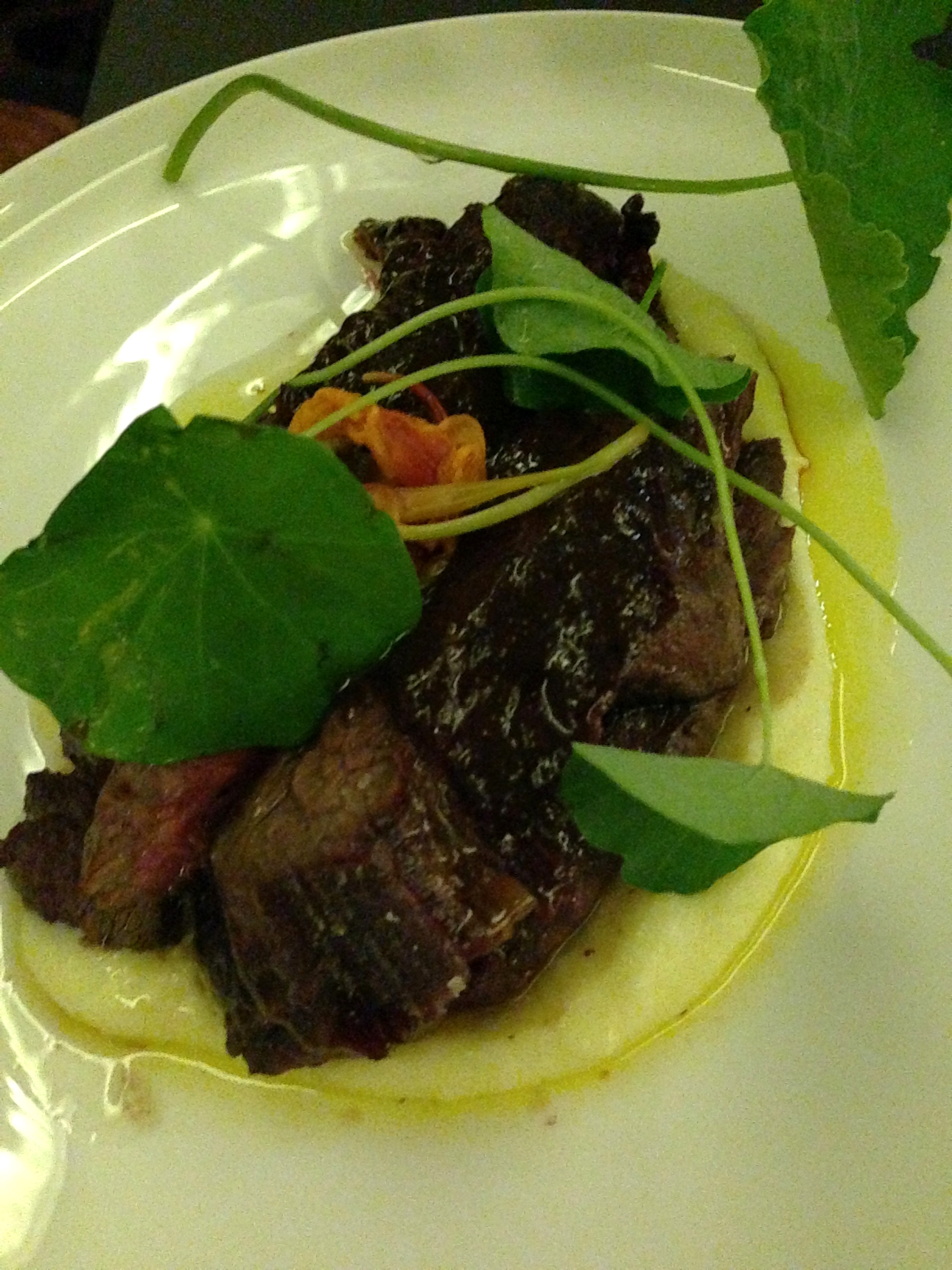 Posted on April 6, 2015 by Jacqui's Food Fetish Leave a comment Grilled beef hanger steak with potato sauce, dripping and pickled nasturtium