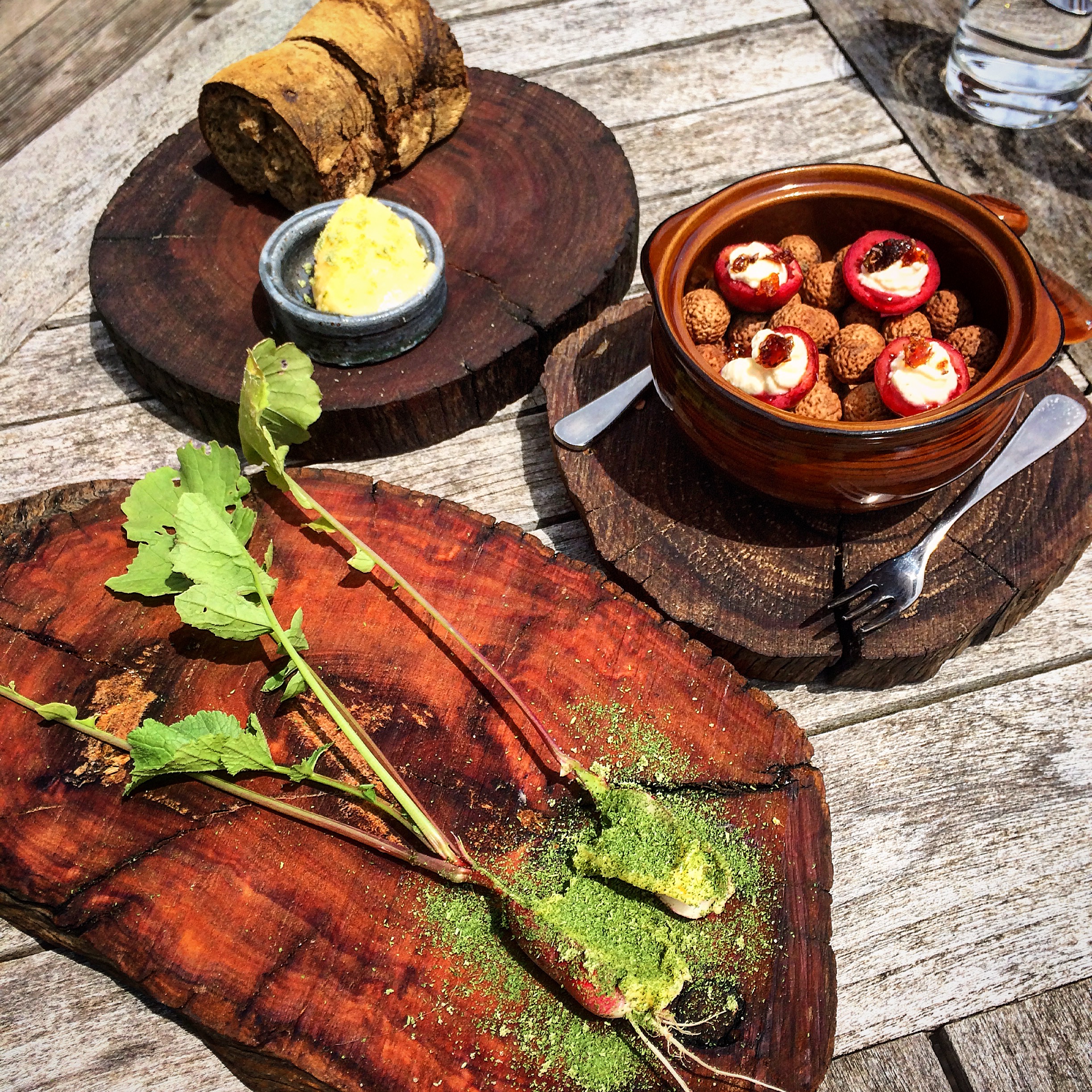 Posted on November 6, 2017 by Jacqui's Food Fetish Leave a comment Gather bread with house churned butter and herb salt, radishes with butter and parsley powder, quandongs