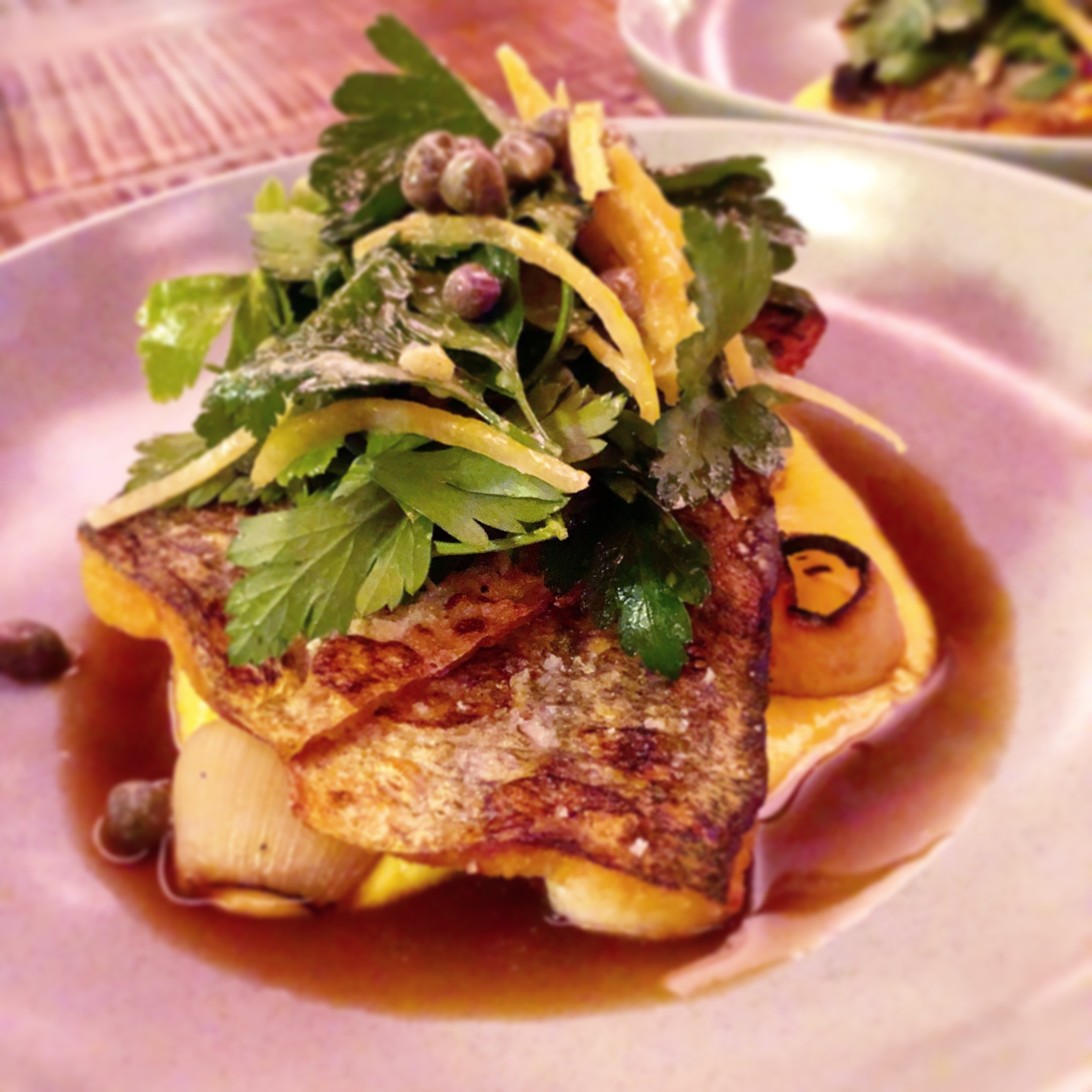 Posted on October 16, 2018 by Jacqui's Food Fetish Leave a comment King George whiting, cipollini onions, corn, preserved lemon, parsley, chicken glaze
