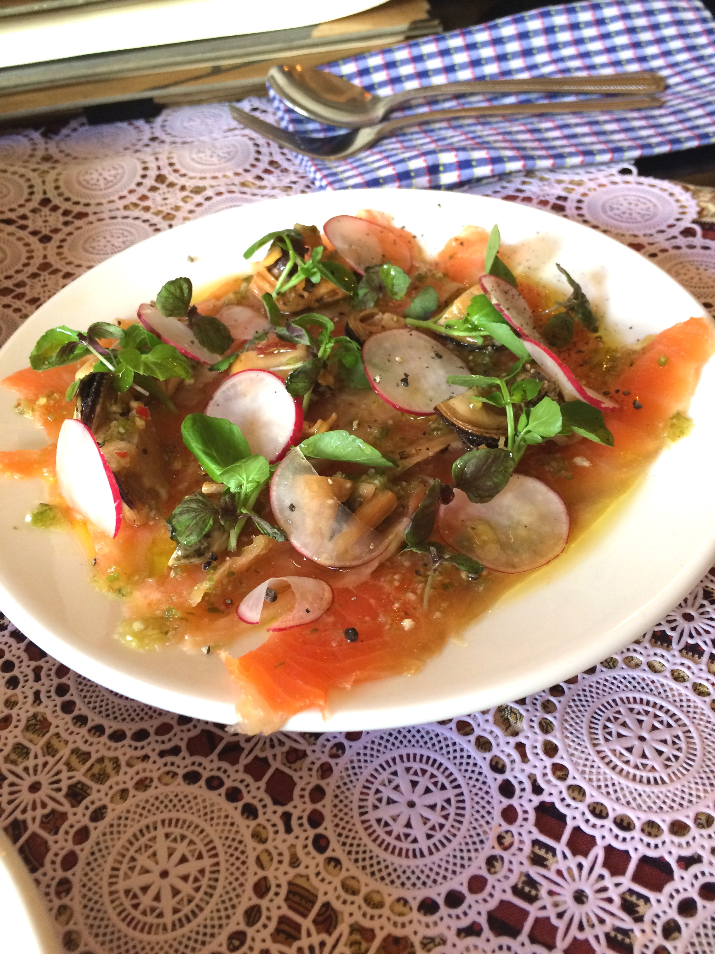 Posted on July 20, 2016 by Jacqui's Food Fetish Leave a comment Cured Ocean Trout, Smoked Mussels, Radish, Watercress and Green Chilli