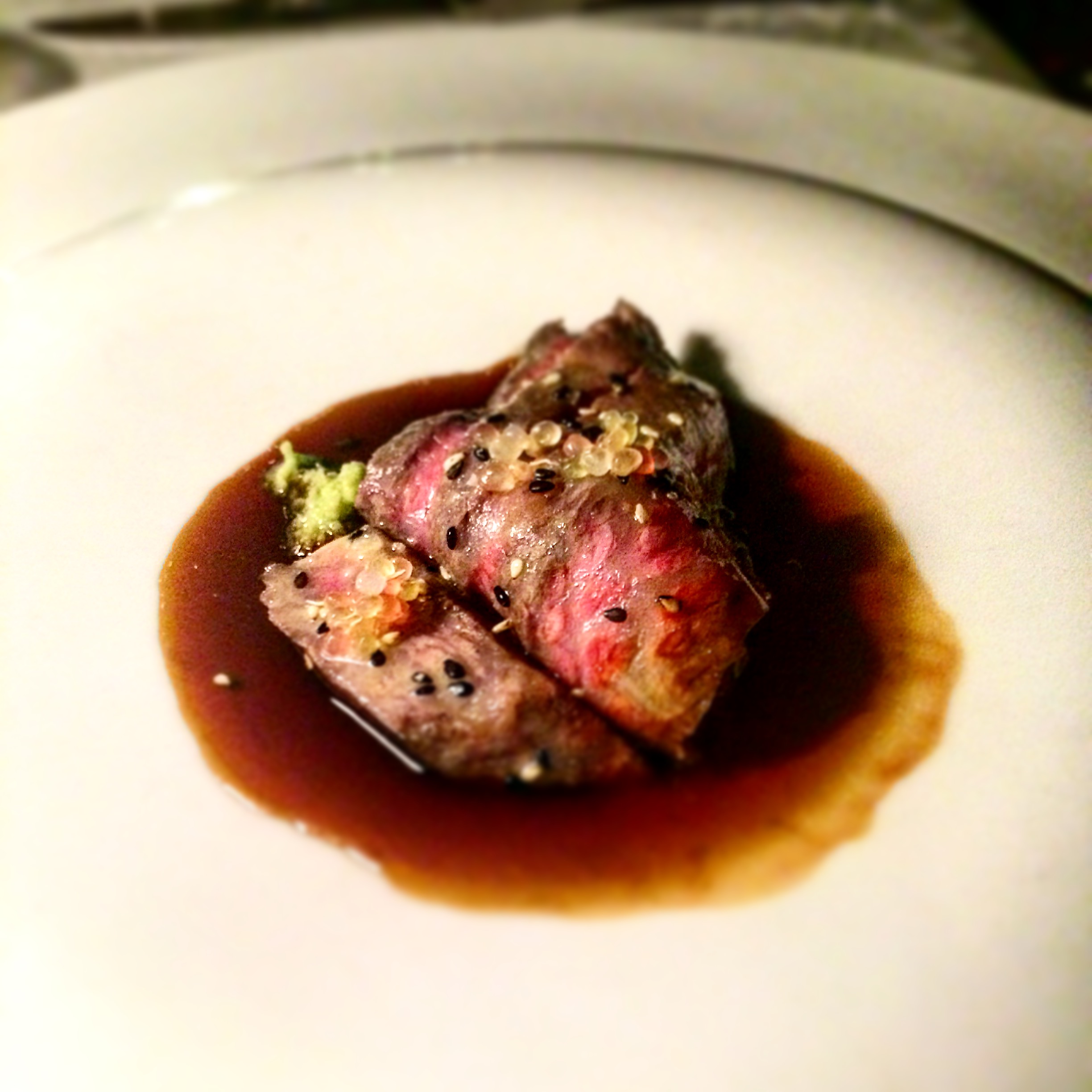 Posted on May 30, 2016 by Jacqui's Food Fetish Leave a comment Blue Mountains Wagyu softly grilled, served with oxtail sauce, wasabi and fresh lime