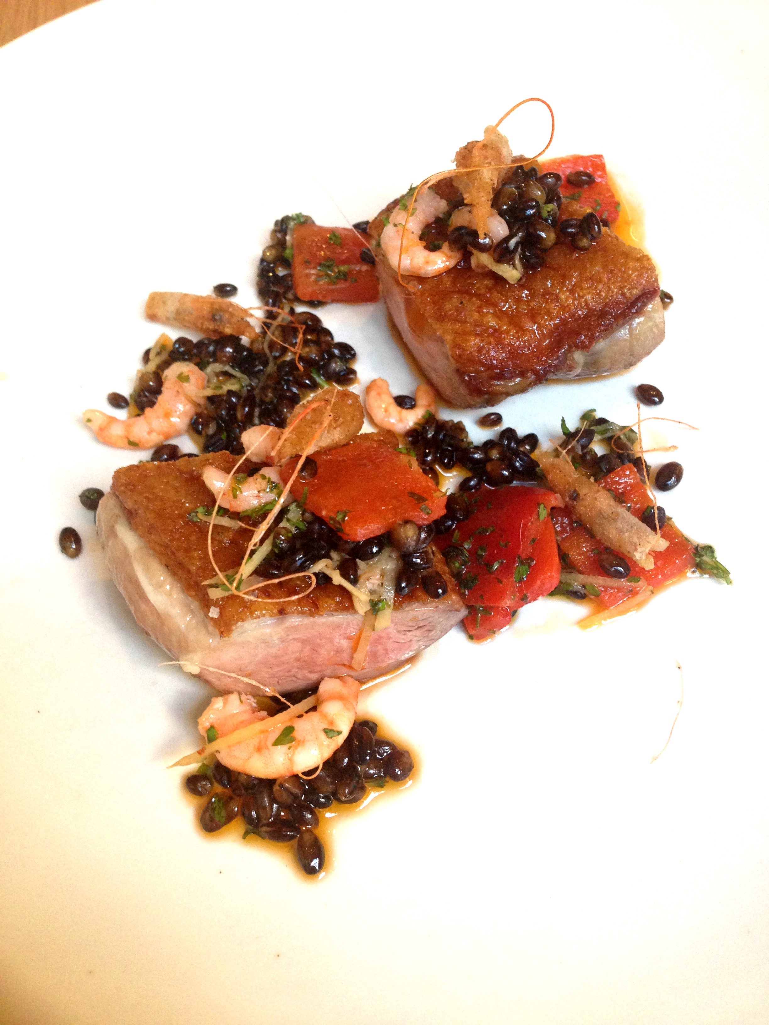 Posted on August 14, 2015 by Jacqui's Food Fetish Leave a comment Duck from Wagin, Clarence River school prawns and Black barley