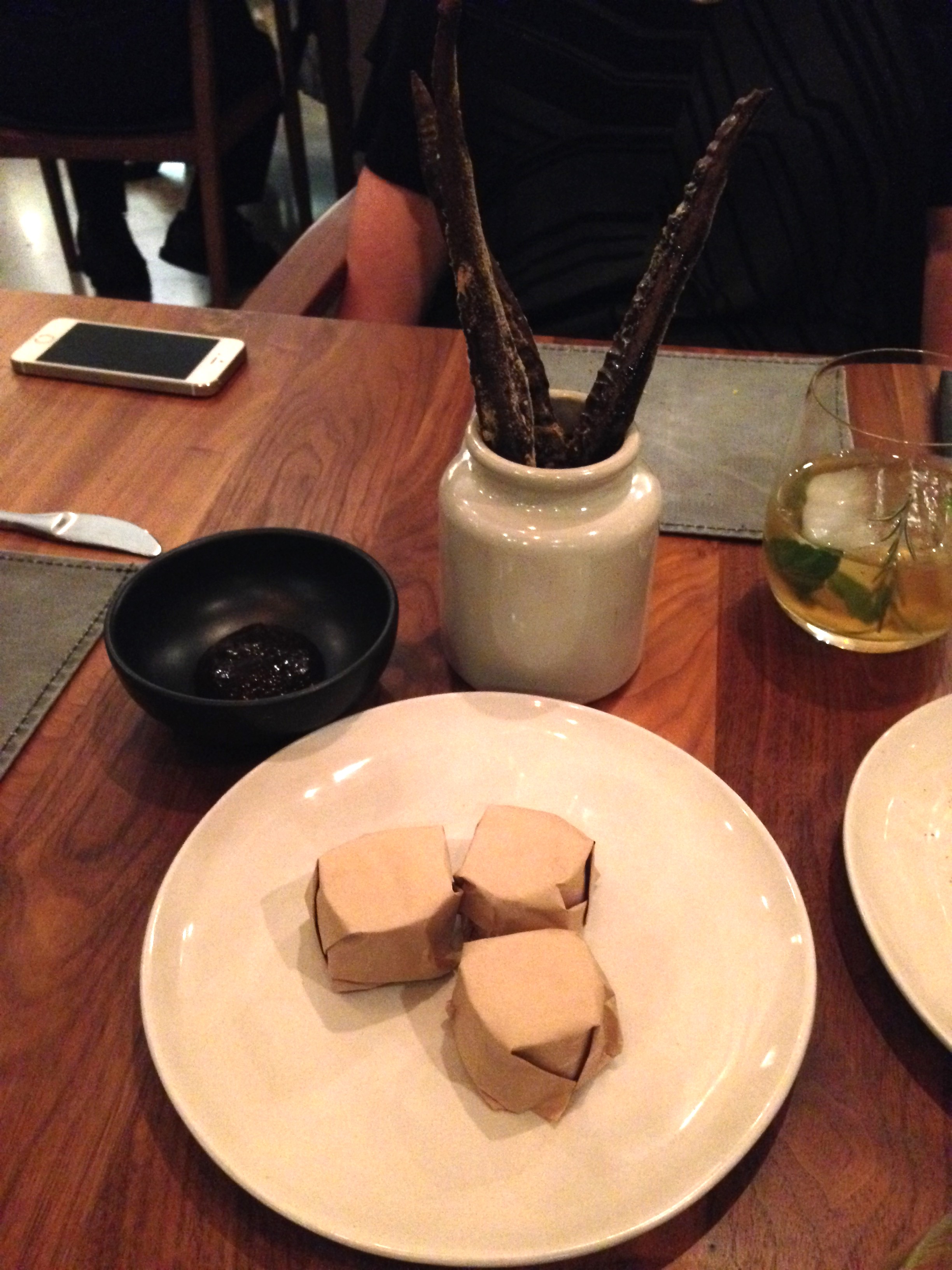 Posted on March 9, 2015 by Jacqui's Food Fetish Leave a comment German bread wrapped in paper, malt bread sticks, prune paste, served with iced peach and ginger tea