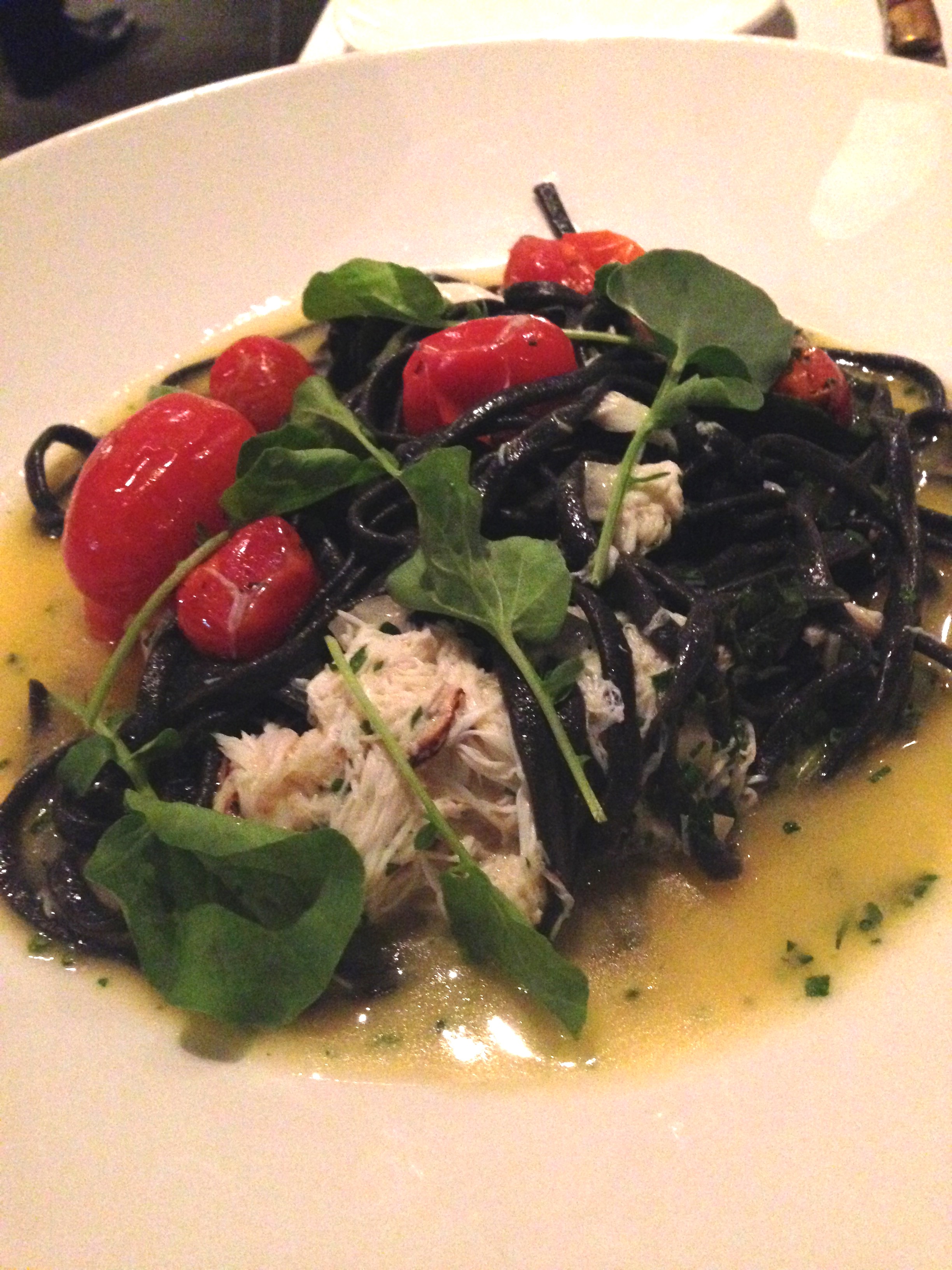Posted on March 9, 2015 by Jacqui's Food Fetish Leave a comment Blue swimmer crab, squid ink linguine, cherry tomatoes, basil & lemon