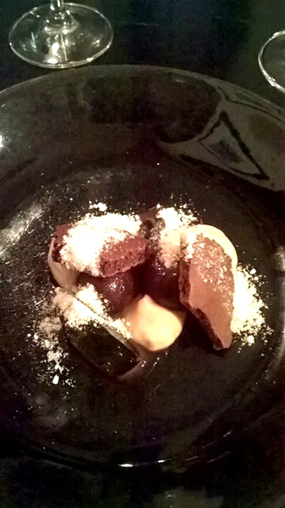 037 Posted on January 7, 2015 by Jacqui's Food Fetish Leave a comment We were given an additional dessert and I loved it!!! Dried chocolate mousse, miso custard, Apple jelly and cherries cooked in Mirin. A combo of savoury and sweet and not too sweet. Previous Return to TOP 100 QUEST: PROVENANCE, Beechworth Victoria