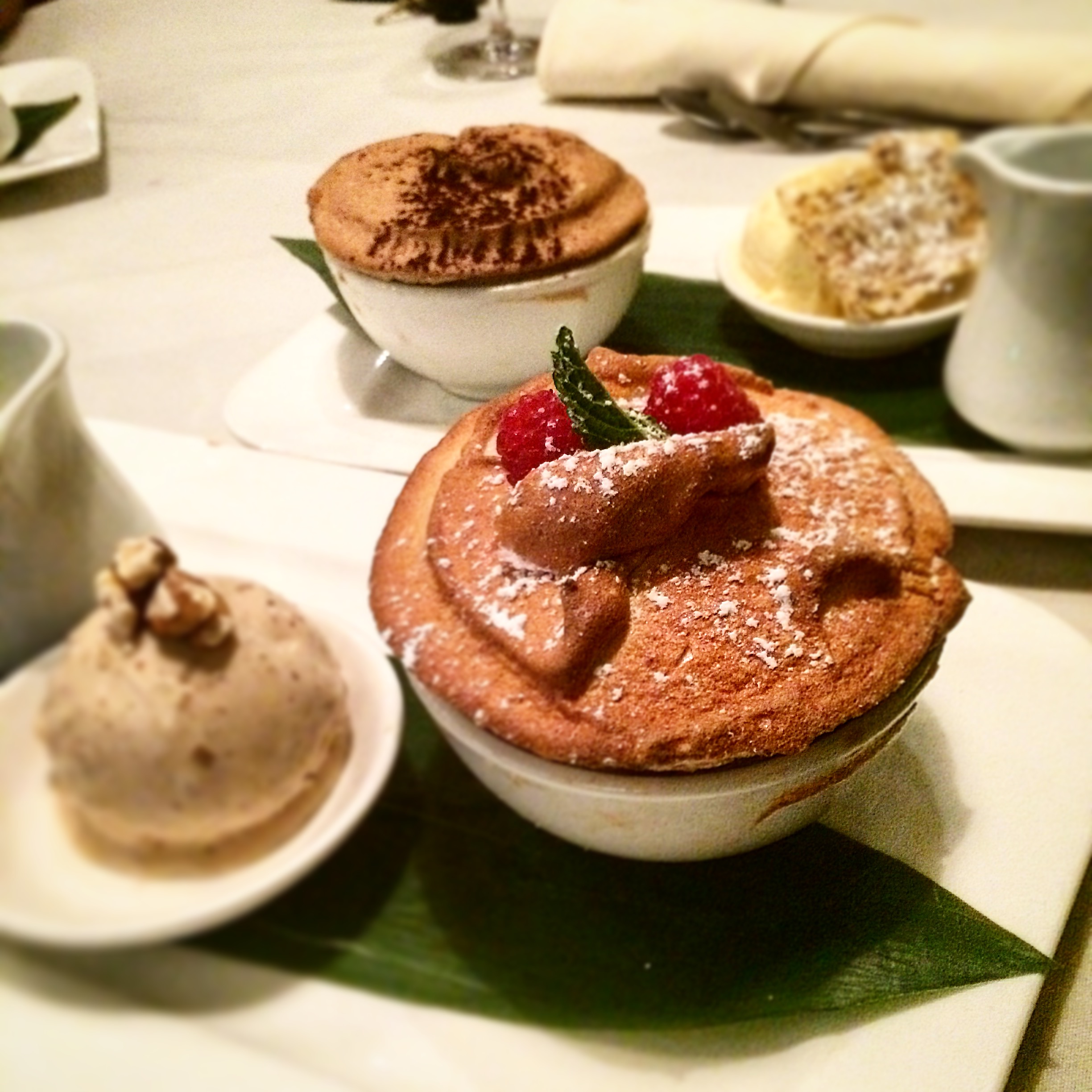 For dessert we each chose a souffle (and why wouldn’t we?!). We had two Banana souffles and two Raspberry and Gorgonzola souffles between us and were instructed to eat from the bottom of the dish up to make sure we got a bit of everything in each mouthful. Light, fluffy, delicious.