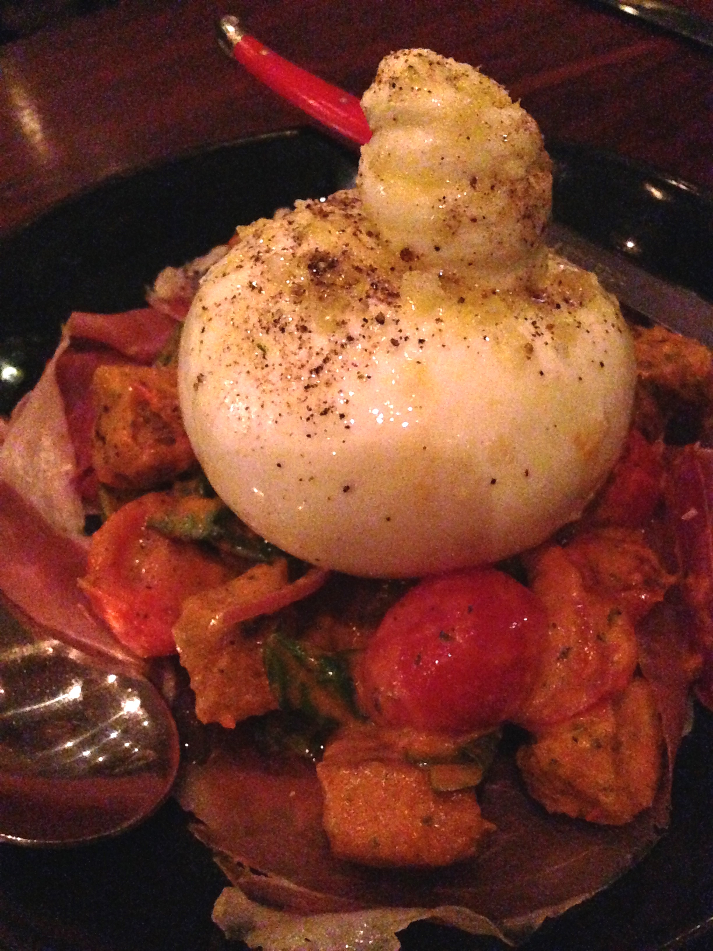 Posted on April 9, 2015 by Jacqui's Food Fetish Leave a comment Burrata – soft cream filled mozarella, panzanella, proscuitto di parma 24 month