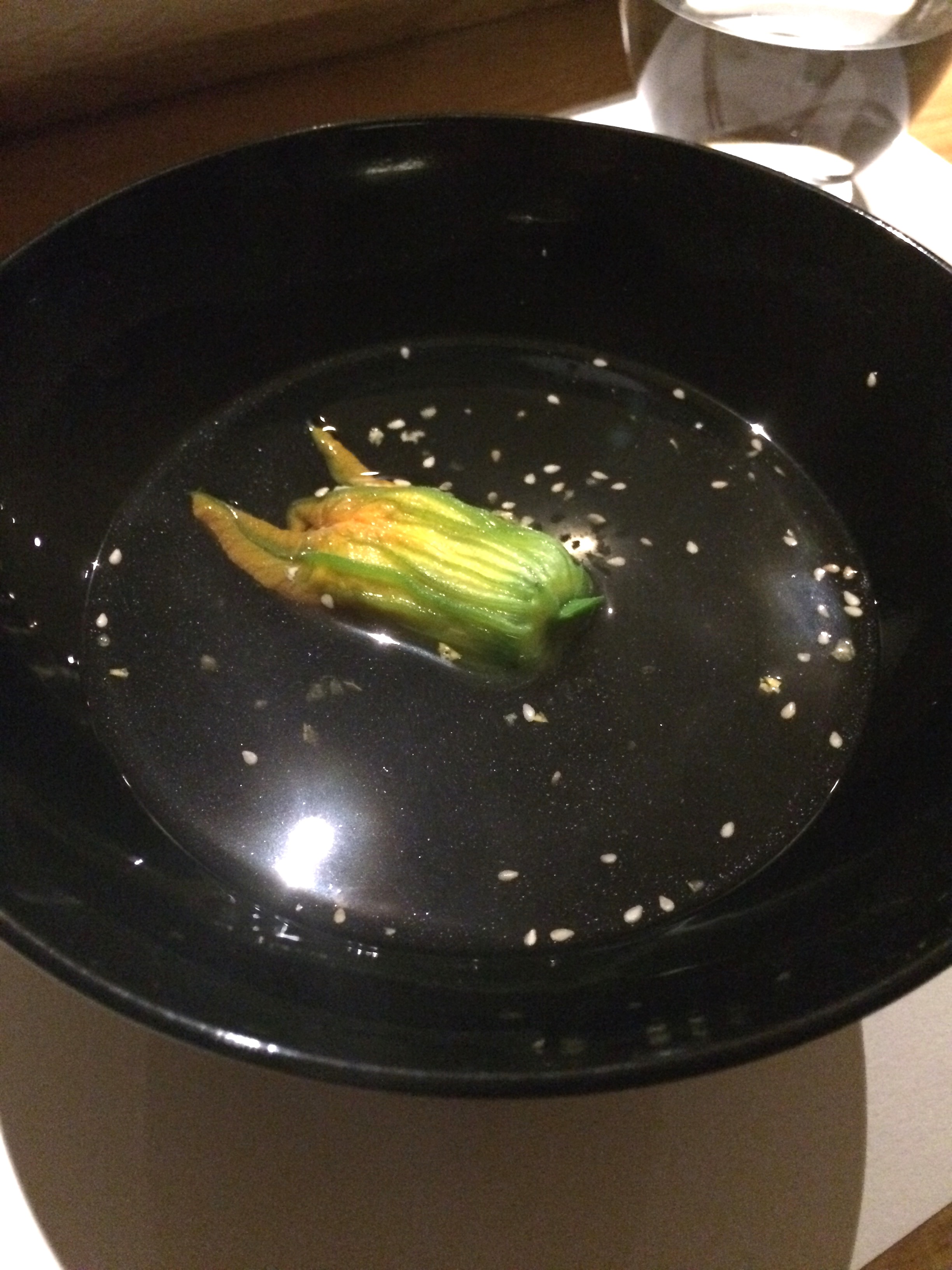 Posted on March 23, 2016 by Jacqui's Food Fetish Leave a comment Clear Soup with Prawn Mousse stuffed Zucchini Flower