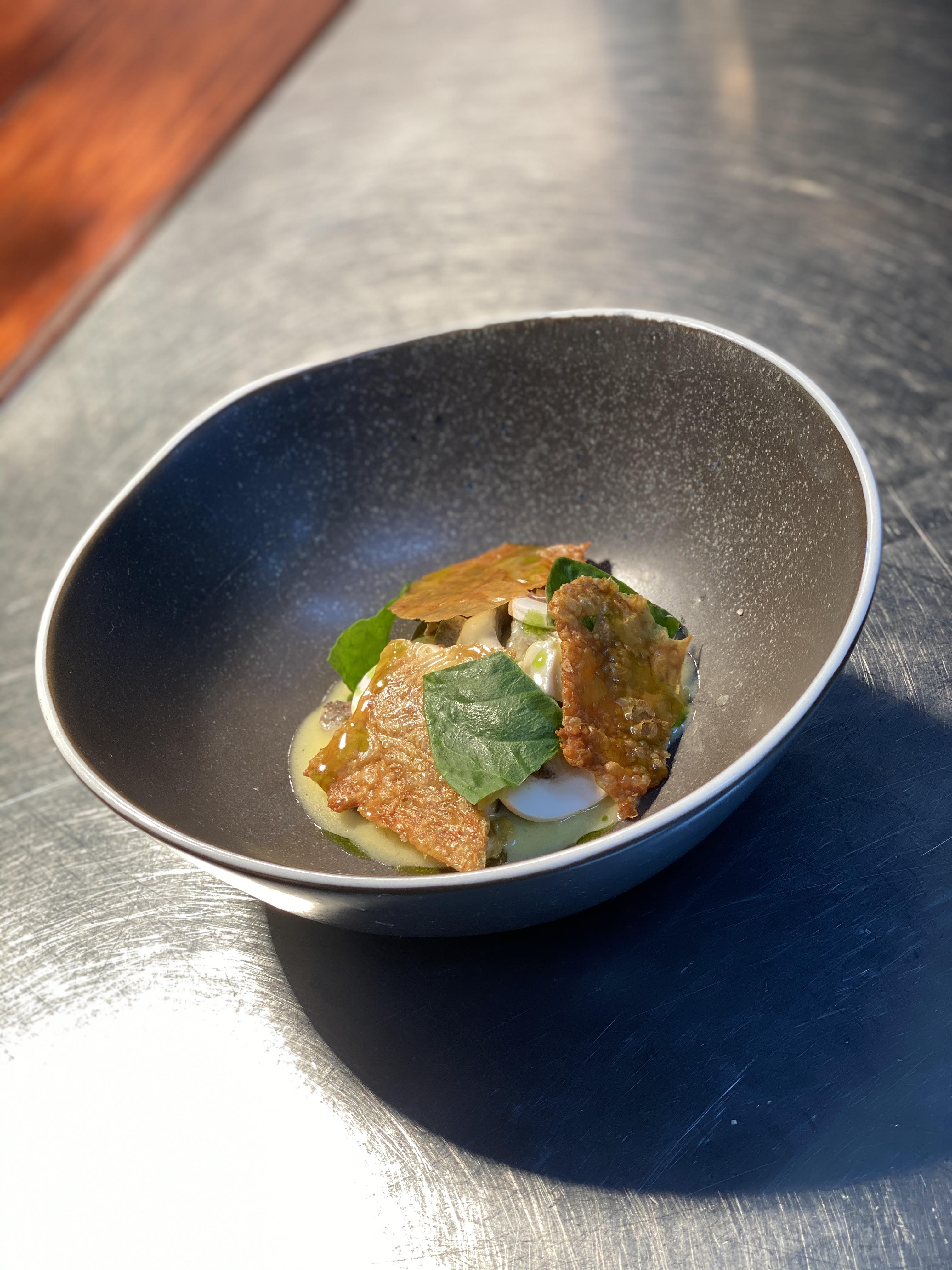 Posted on August 30, 2020 by Jacqui's Food Fetish Leave a comment On the pass – Coorong Mullet, leek, mushroom, chicken skin