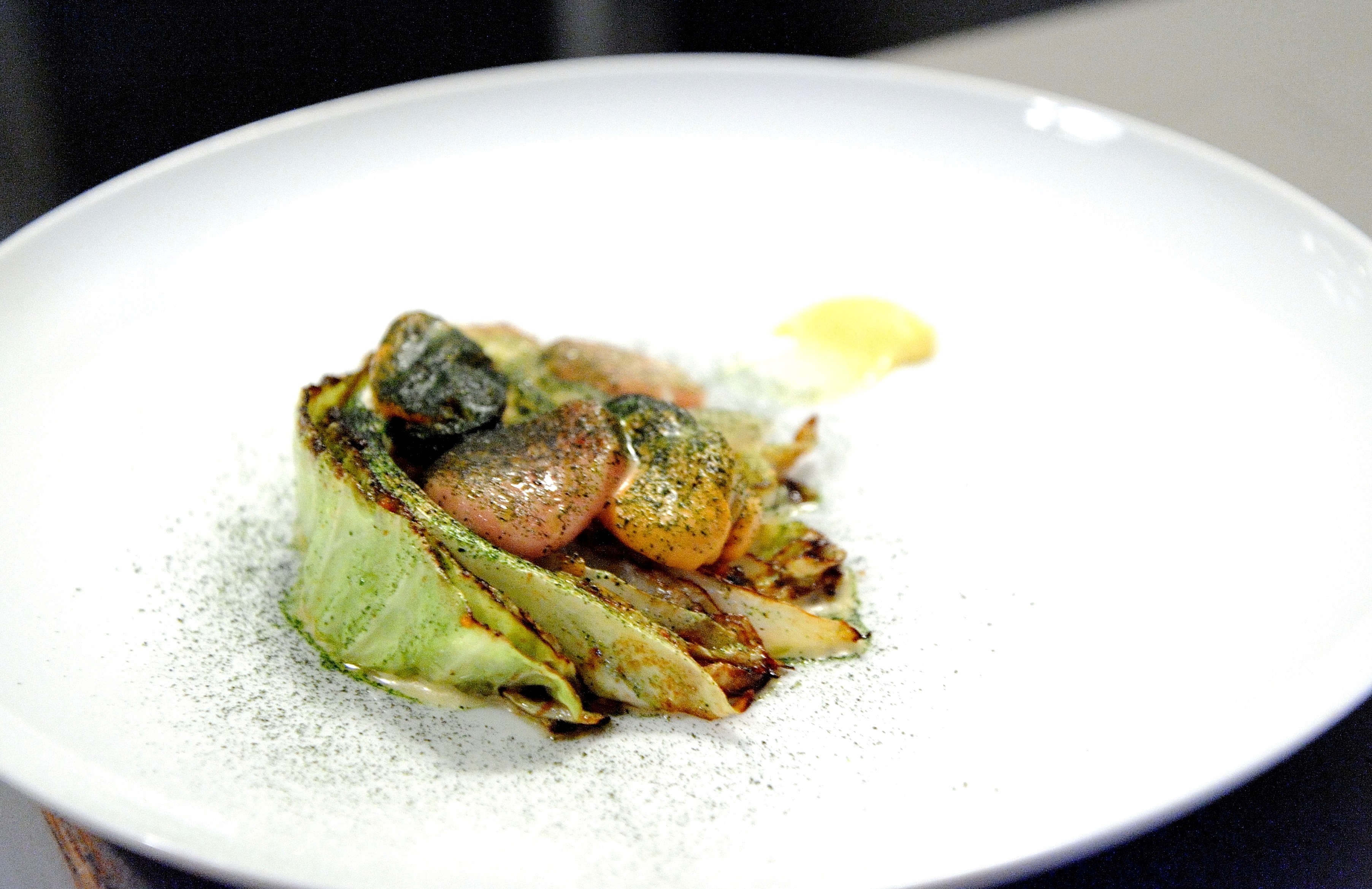 Posted on June 6, 2015 by Jacqui's Food Fetish Leave a comment Cabbage, mussel butter, bone marrow, pomelo