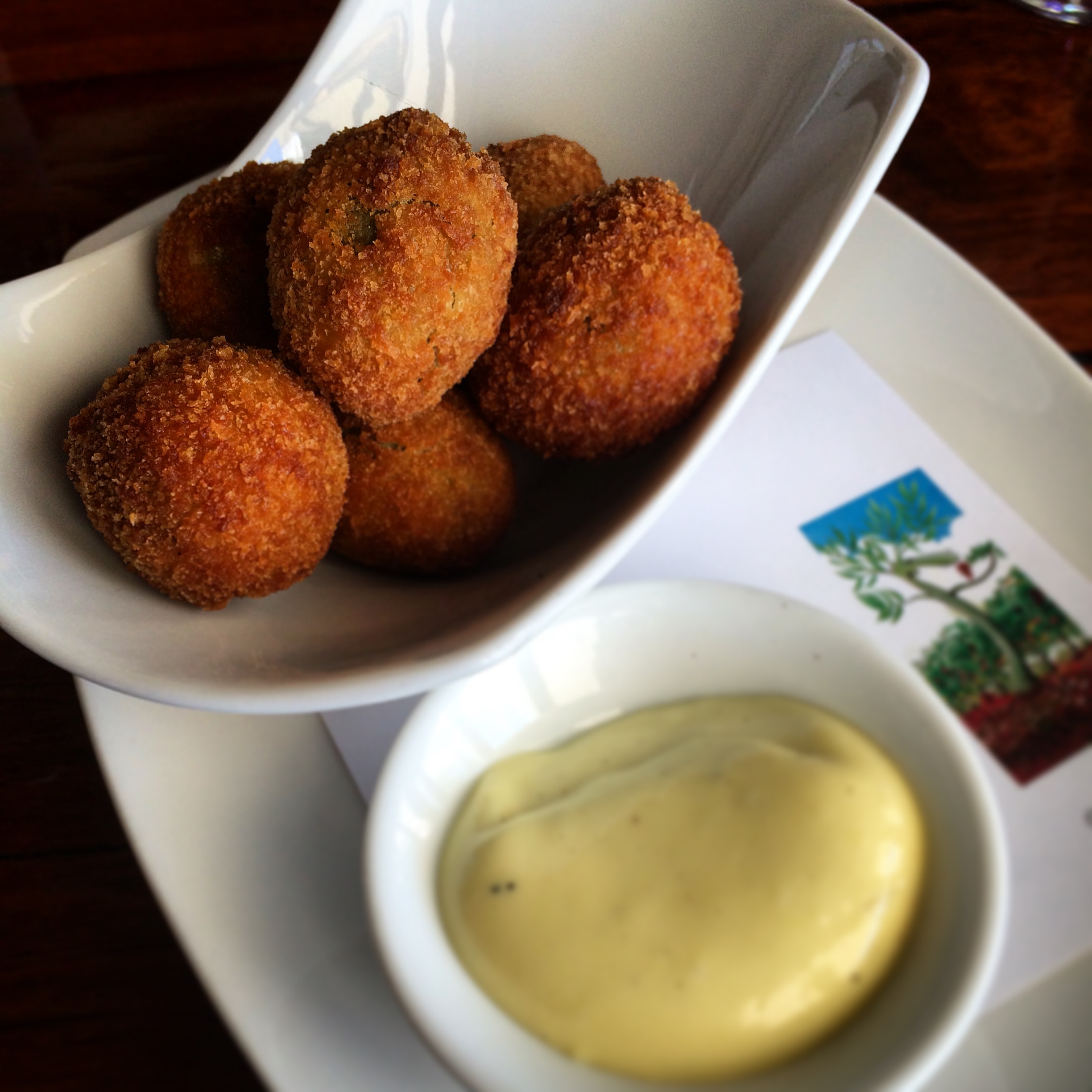 Crumbed, fried olives