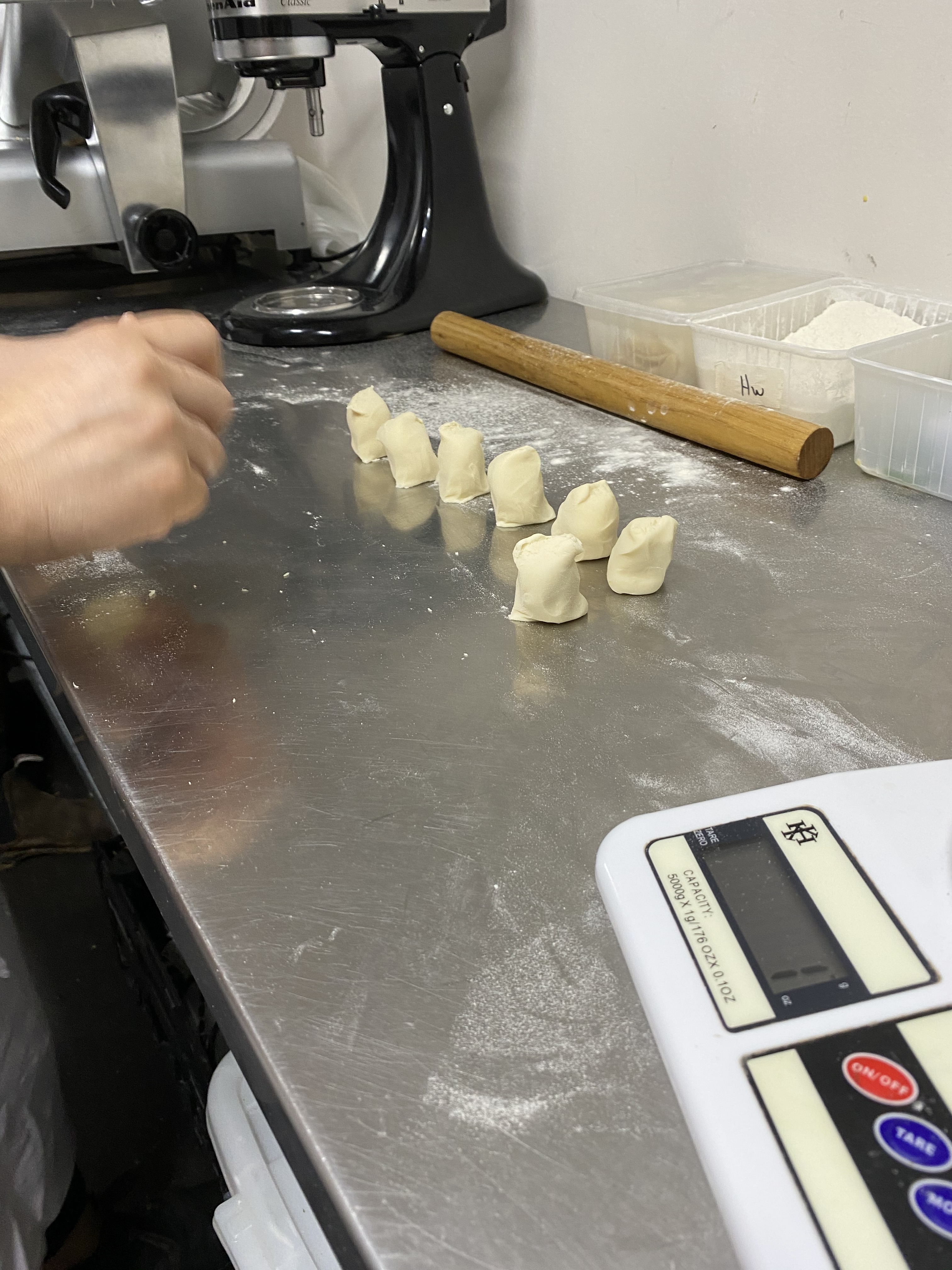 Olivia weighing out bao pastry
