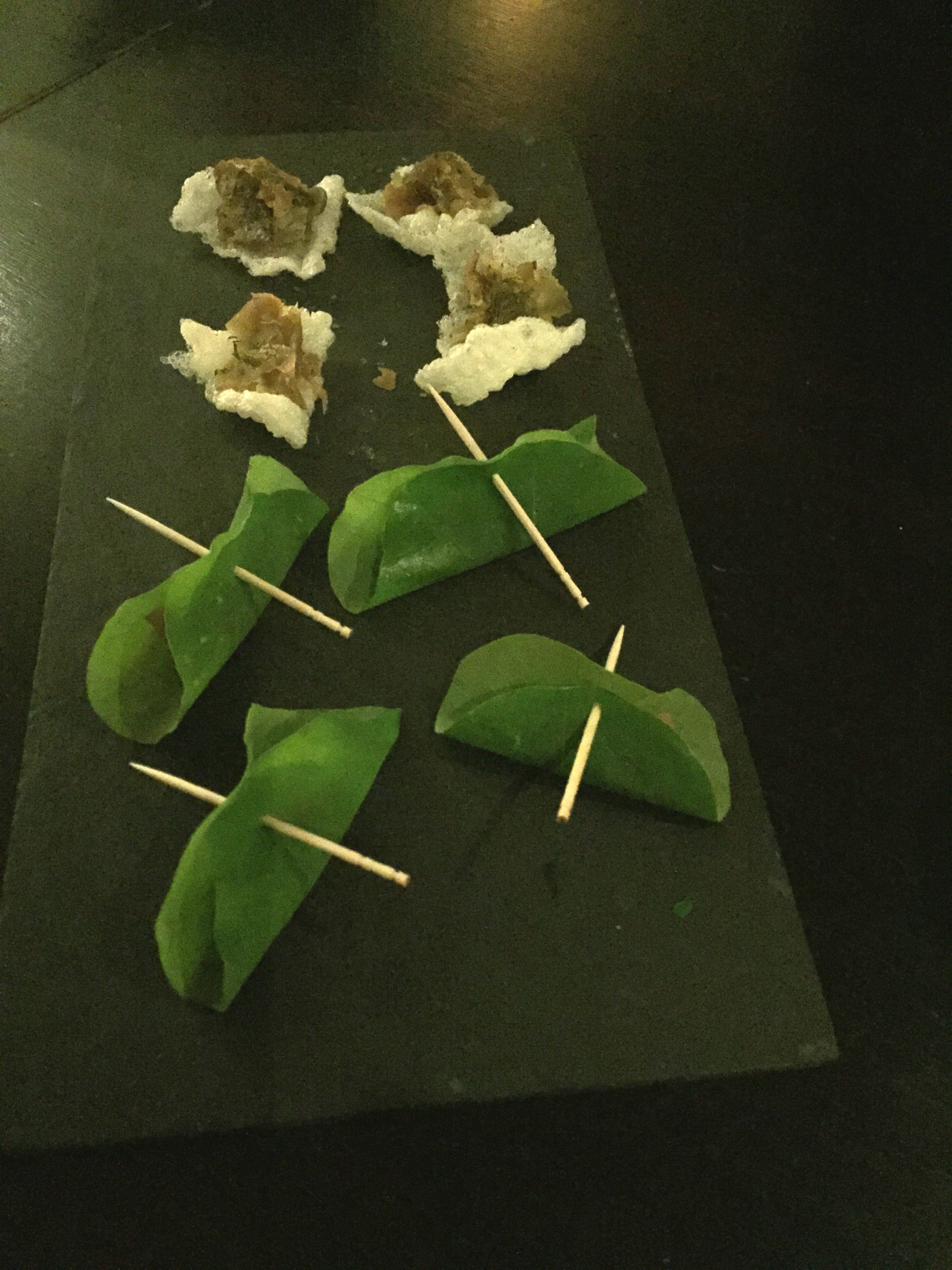 Posted on August 24, 2015 by Jacqui's Food Fetish Leave a comment Fremantle tuna tartare wrapped in nasturtium leaf / mojama(air dried Yellowfin tuna) with bottarga and basmati cracker