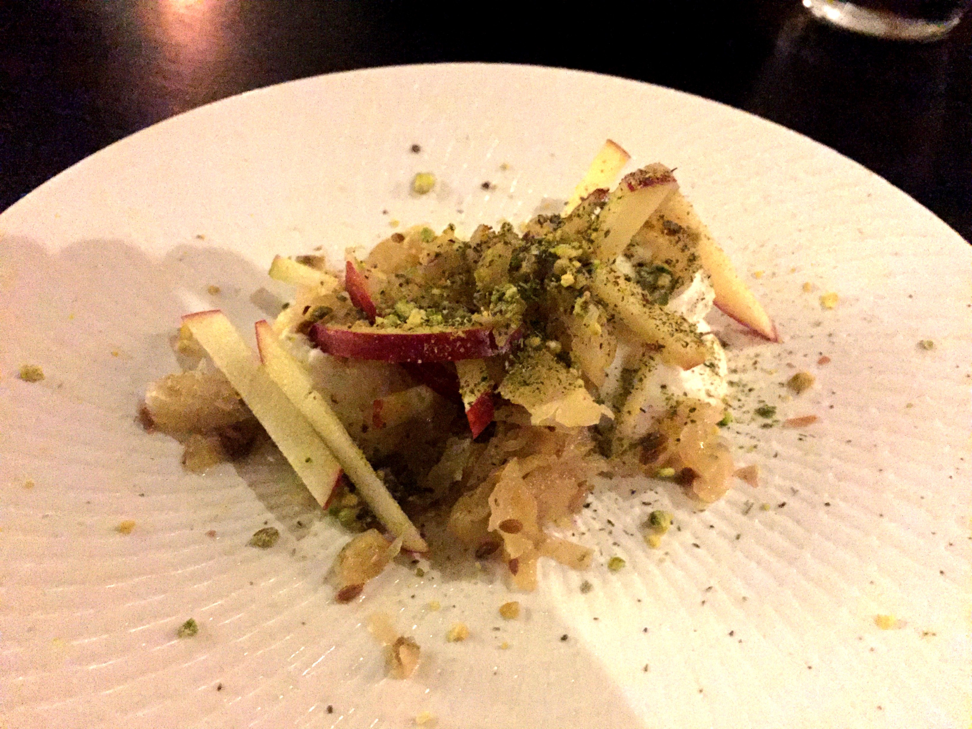 Posted on August 24, 2015 by Jacqui's Food Fetish Leave a comment Optional goat cheese course – Creamy Northam with Apple, sauerkraut