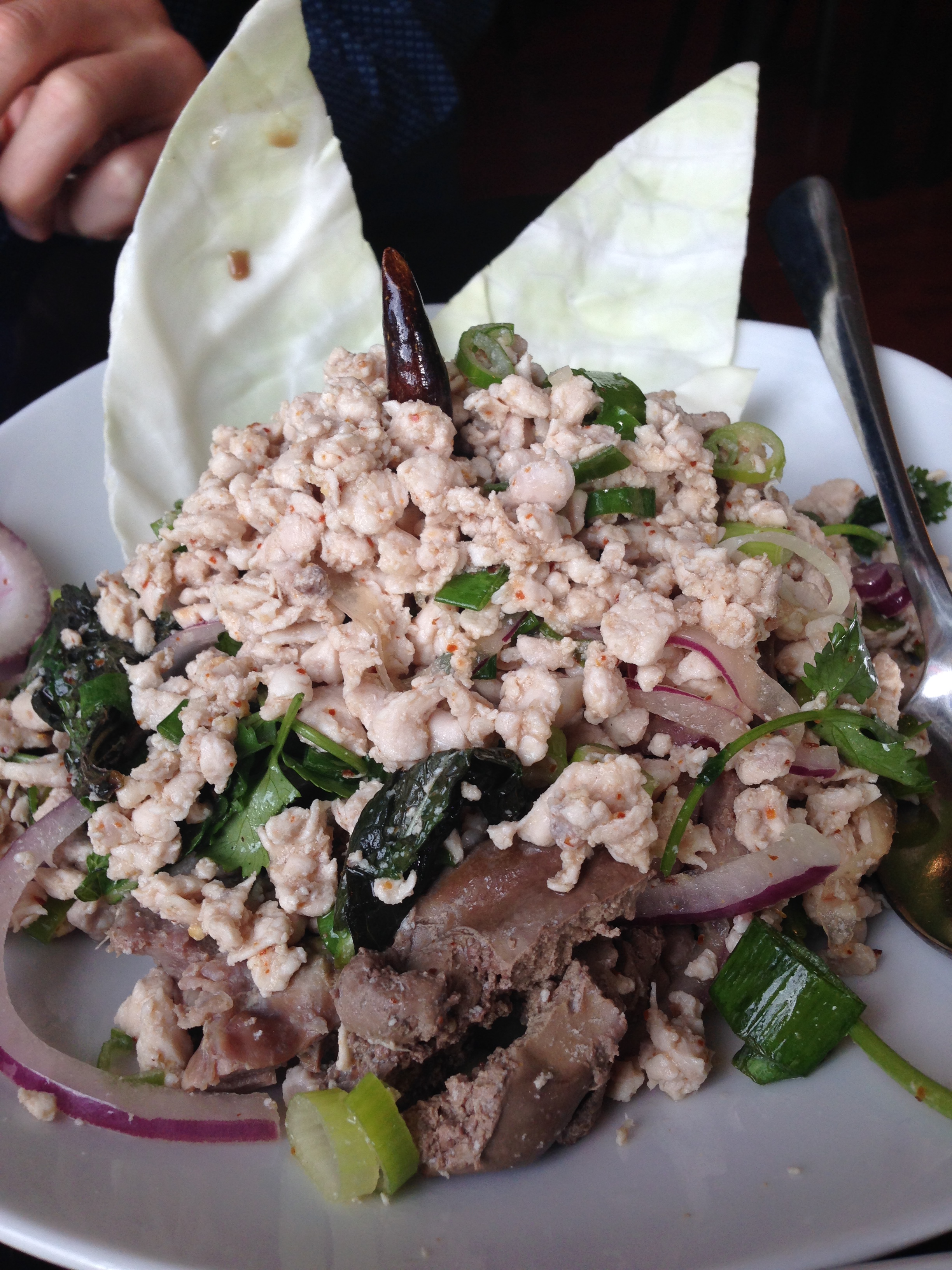 Posted on April 8, 2015 by Jacqui's Food Fetish Leave a comment Northeastern larp salad with liver, kidneys and chicken skin