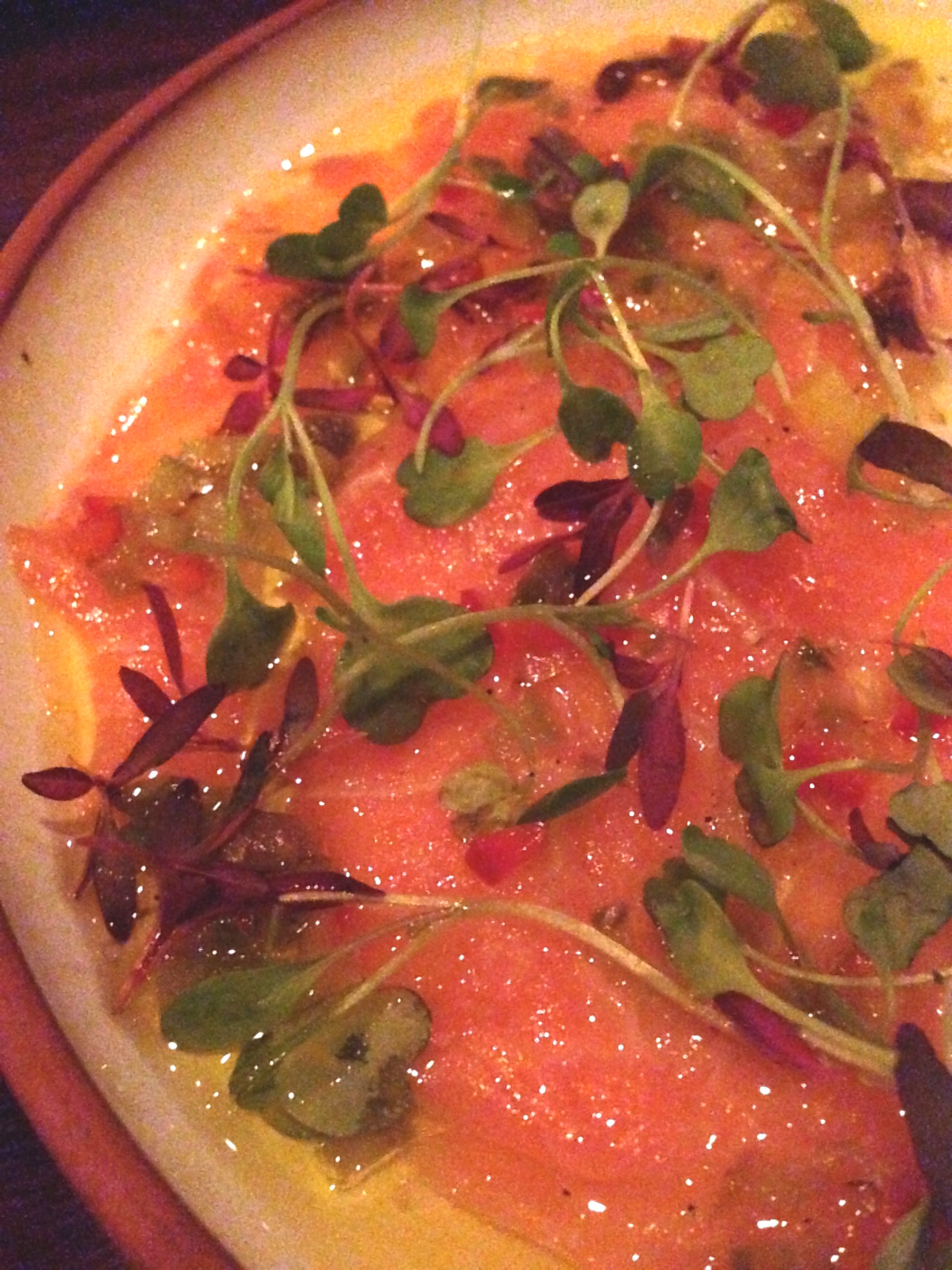Posted on April 9, 2015 by Jacqui's Food Fetish Leave a comment Salmon carpaccio, peperoni, colorati, capperi & olive oil